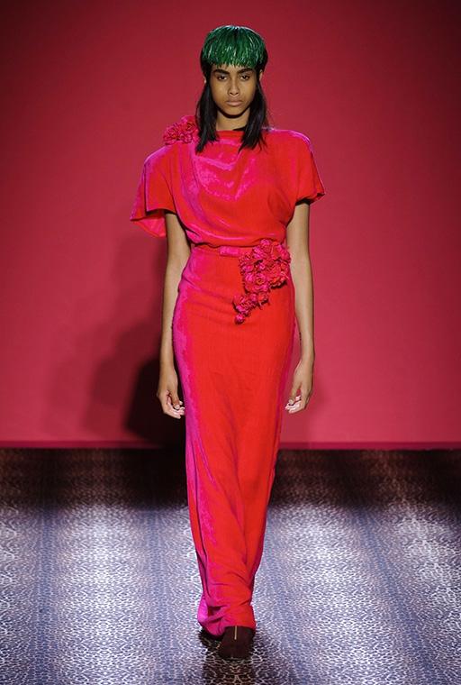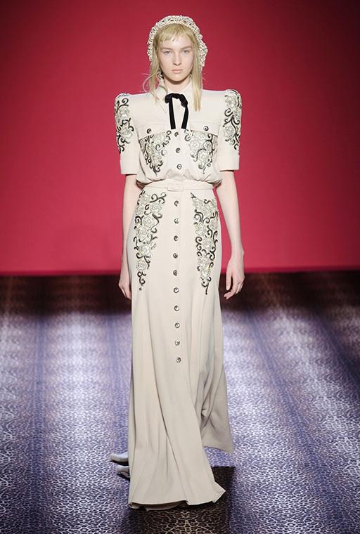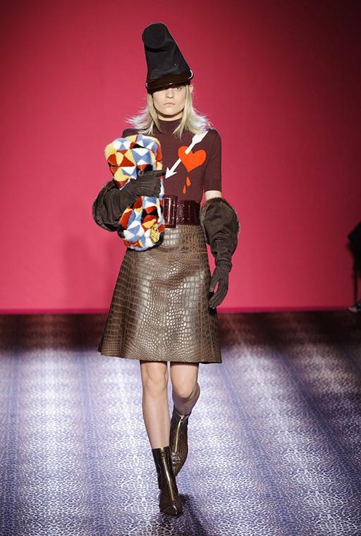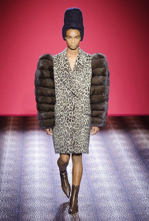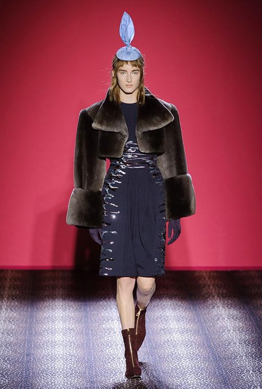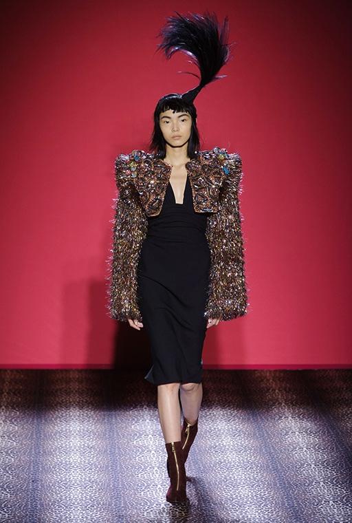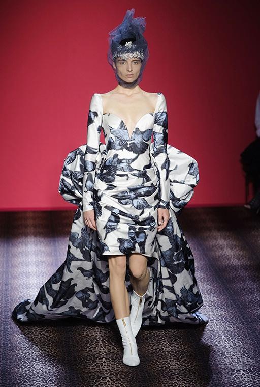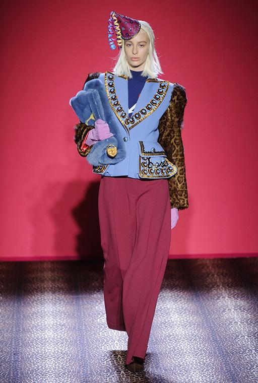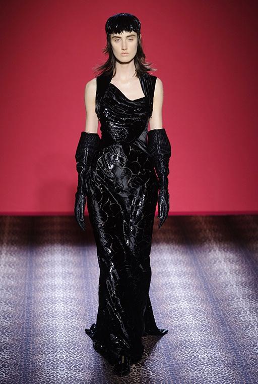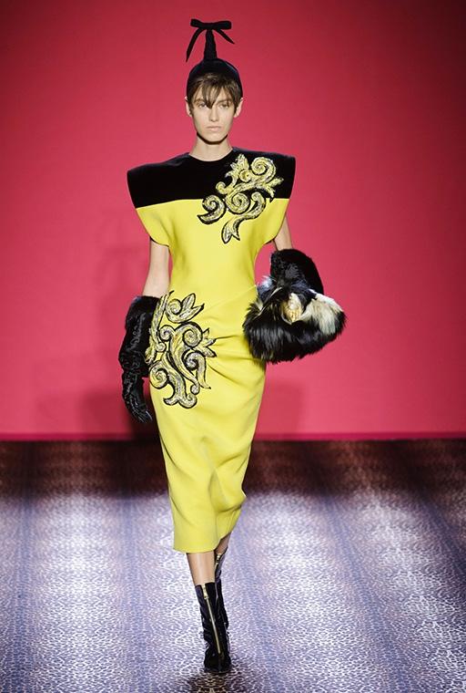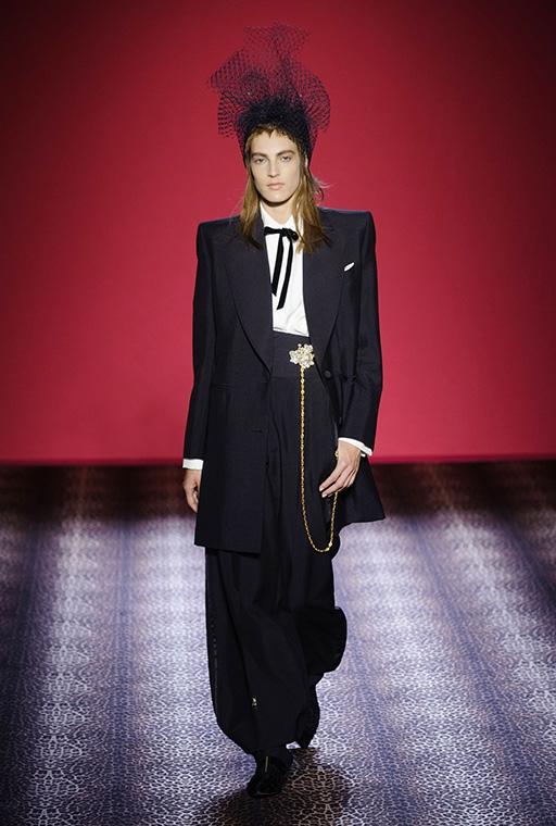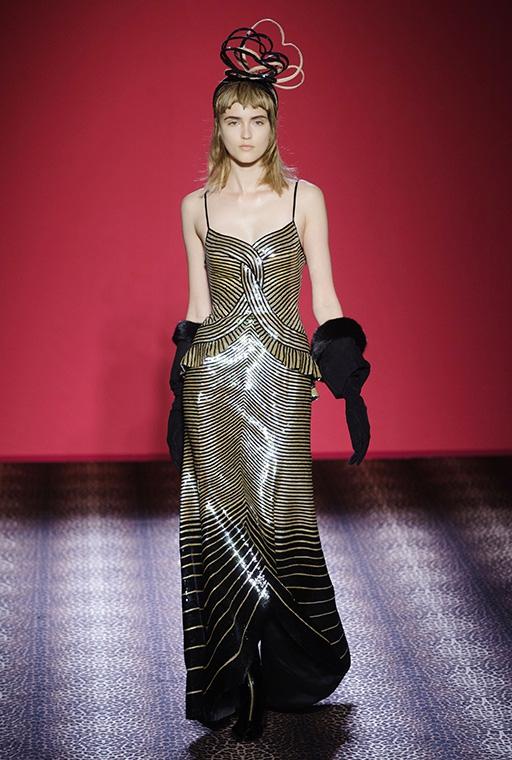 Marco Zanini esplora la personalità debordante della fondatrice-musa, si addentra nei meandri dellíeccesso realizzando una collezione caleidoscopica che bilancia femminilità sfrontata e sofisticata eleganza. C'è l'abito blu in velluto col cuore che sanguina rubini, quello ricoperto di scoiattoli, il cappotto doppiopetto leopardato con le maniche in zibellino, il lungo cappotto da zarina ed il bolero in piume di struzzo smaltate che imita il pelo di scimmia. Ogni capo, accessoriato con gli stravaganti cappelli di Stephen Jones, è ironia, creatività, eclettica irriverenza e glamour.