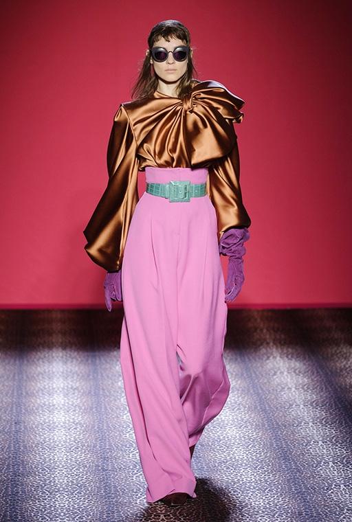 Torna Schiaparelli, per la seconda volta sotto la guida di Marco Zanini. L'eredità di Elsa c'è tutta, i codici della sua moda anche. I colori saturi sottolineano le geometrie dei tagli, stampe vivaci e applicazioni design provocano e fanno sognare, spalle importanti e forme a clessidra per il giorno si alternano a silhouettes sinuose fasciate negli abiti da sera. I contrapposti si uniscono nello stile Schiaparelli.