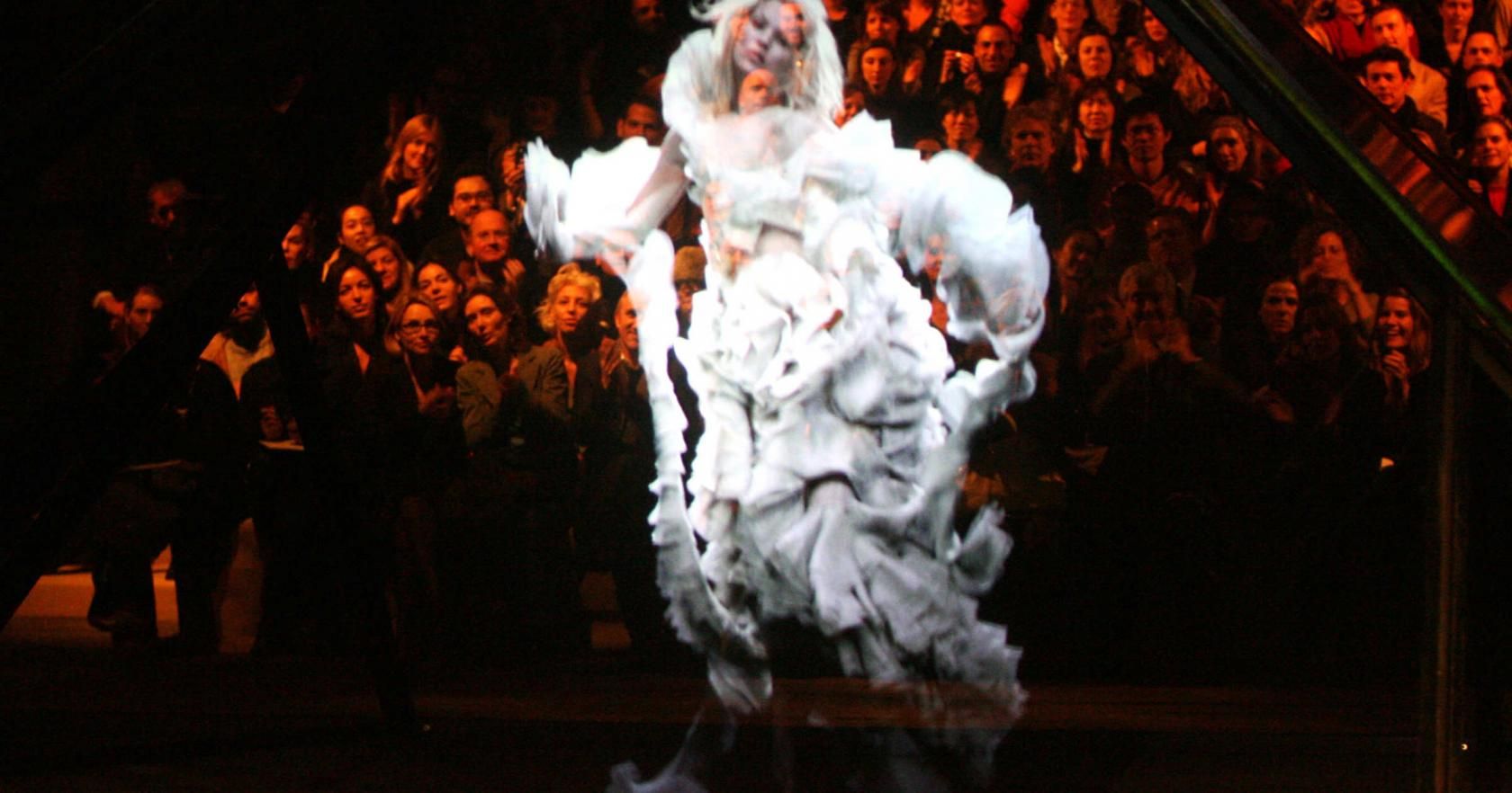 #5. IL CELEBRE OLOGRAMMA DI KATE MOSS A GRANDEZZA NATURALE. L'etereo finale della sfilata autunno-inverno 2006 occuperà un'intera stanza. Utilizzando Pepper's Ghost, una tecnologia del diciannovesimo secolo ideata da John Henry Pepper per un'opera di Charles Dickens, farà rivivere la magica immagine della modella.