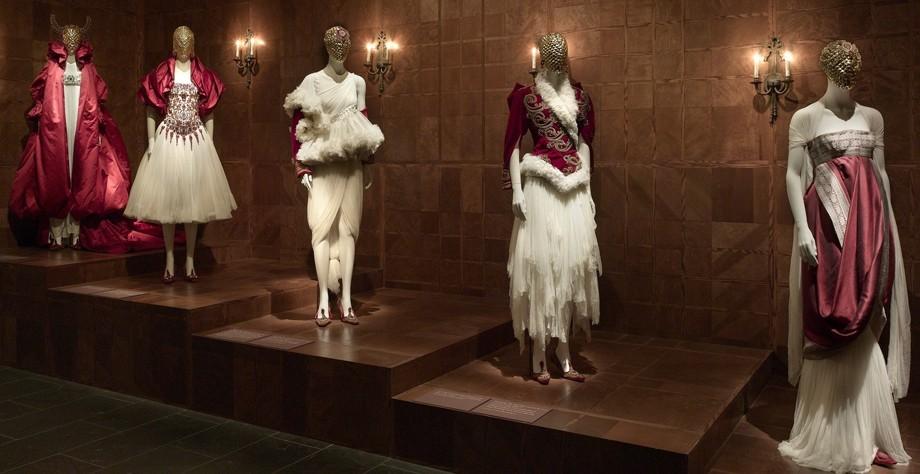 #4. SEZIONI LEGATE AL ROMANTICISMO. La prima è "The Romantic Mind" incentrata sul metodo di taglio e costruzione degli abiti utilizzato da McQueen. "Romantic Gothic" riprende la continua esplorazione dello stilista del dualismo tra luce ed oscurità, tra vita e morte. L'ossessione per la tradizione scozzese e l'impero britannico è evocata in "Romantic Nationalism", mentre quella per l'esotico,il lontano sarà nella sezione "Romantic Exoticism". La natura, le sue forme e materiali, il suo aspetto crudo occuperanno ampio spazio in "Romantic Naturalism" ed in "Romantic Primitivism".