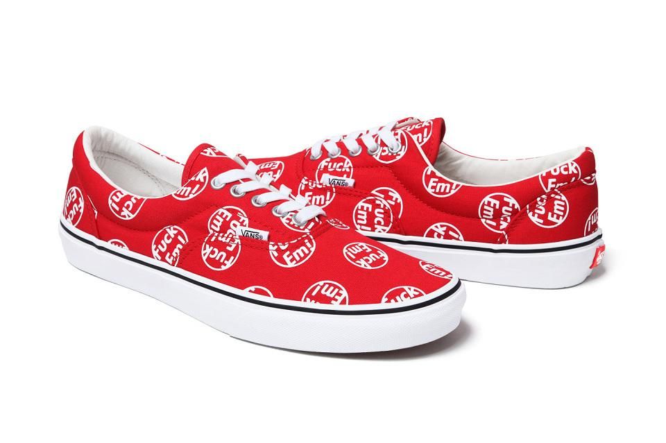 Vans e Supreme ci svelano la loro seconda collaborazione per la stagione FW14. Il pattern per decorare le sneakers del brand californiano è il “Fuck ‘Em” che aveva già ricoperto in precedenza felpe e shorts. Ogni sneaker è disoponibili in due varianti colori per ciascun modello, rosso e nero.