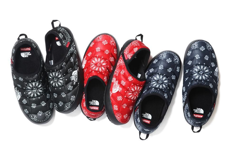 Supreme ci presenta la sua nuova collaborazione stagionale con il brand The North Face, dopo le mappe, questa volta.. paisley all over. La collezione è composta da una nuova edizione del Mountain Parka, babbucce, saccoapelo, guanti e borsoni da viaggio. Dal 20 Novembre tra i monomarca e online.