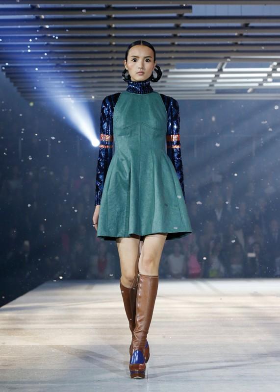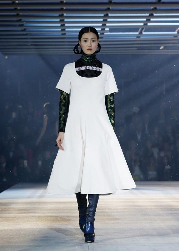 All'interno dell'arena Kokugikan, mentre da una gigantesca griglia di ferro cadono fiocchi di neve finta avvolgendo in un'atmosfera da favola un pubblico di 1.400 persone, sfila Esprit Dior Tokyo, collezione pre-fall 2015 della maison francese.