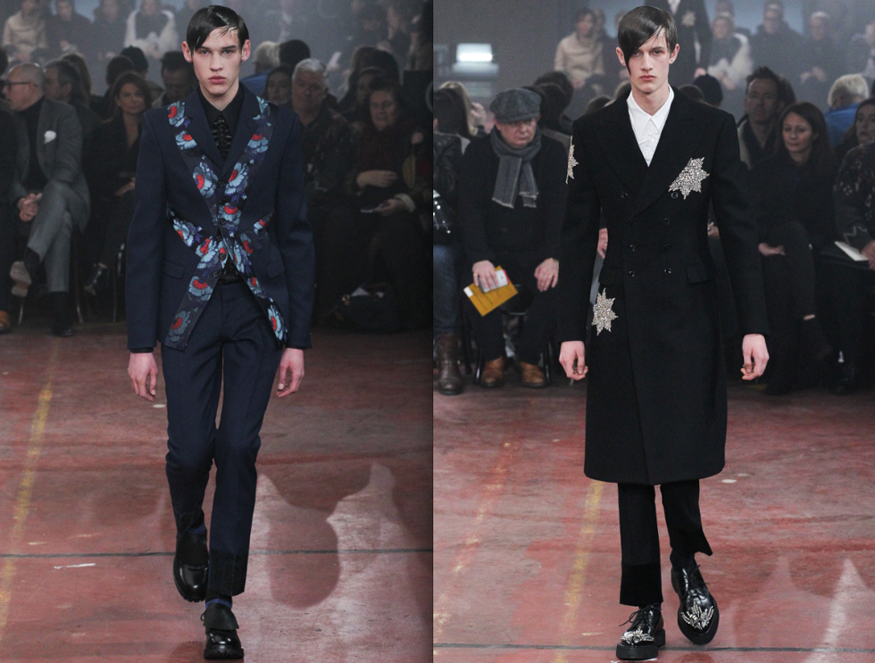 Sarah Burton trasformata la storia in moda. L'uniforme, declinata in gessato, pied de poule o ricoperta di papaveri, fiore simbolo del grande conflitto, è la protagonista assoluta della collezione. Abiti e cappotti, realizzati in jacquard di seta e velluto, nei toni fumosi del grigio e del nero, con qualche concessione al ciliegia, ornati con le parole "Valore, Verità, Onore", sono piccoli capolavori di sartorialità. E' questa l'eredità di Alexander McQueen che la Burton continua a portare avanti. La designer abbandona l'eccentricità del suo amico e predecessore per abbracciare un'estetica elegante e misurata.