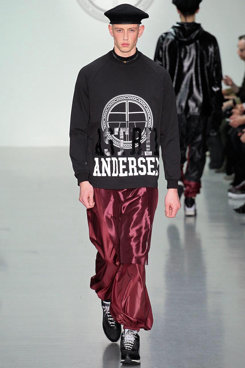 La designer danese resta fedele alla propria estetica e continua ad esplorare l'influsso dellíabbigliamento femminile in quello maschile, introducendo dettagli iper-femminili nel suo sportswear. Nella collezione presentata in questi giorni a Londra Andersen parte dal cult di Jim Jarmusch "Ghost Dog" e dalla figura del tradizionale samurai giapponese per arrivare a creare uno sportswear dalle chiare influenze militari e gli accenni hip hop. Felpe over, tute in velluto, joggers in vernice si mescolano con berretti militari, con Ushankas di pelliccia, con bombers. Nero, grigio sono i colori perfetti per l'uniforme del moderno samurai che creano una equilibrata distonia con i dettagli in pizzo e rosa shocking.