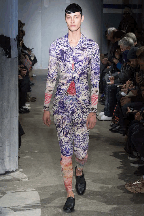 Sono tutte esperienze sigillate sulla nostra pelle, tatuate come le stampe realizzate da Joseph Ari Aloi aka JK5, disegni che animano la collezione presentata in questi giorni a Parigi. Le grafiche multicolore si sovrappongono ai gessati scuri, al bianco puro spezzato dalle immagini sconvolgenti del fotografo sudafricano Roger Ballen (invisibili in 2-D).