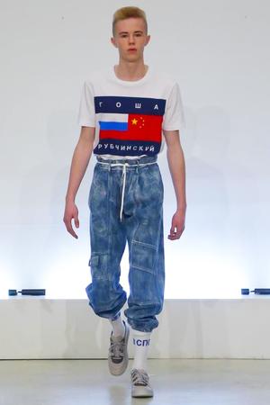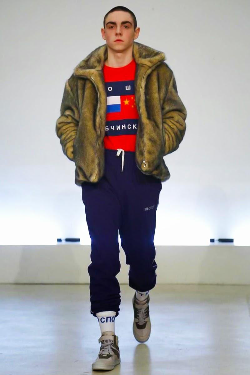 Gosha Rubchinskiy porta in passerella la Russia degli anni '90 , quella post-glasnost e ne rielabora codici e stereotipi, creando una collezione di streetswear ibrido. All'interno di un'antica chiesa ortodossa i tredici modelli, scelti attraverso un casting in strada, sono la fotografia in divenire dell'antica alleanza Russia-Cina.