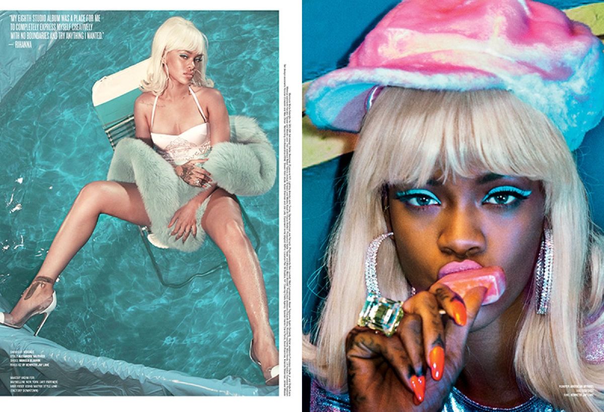 Una super sexy Rihanna posa senza veli per la nuova cover di V Magazine scattata da Steven Klein. Eyeliner blu, colori saturi, un costumino striminzito che esalta il suo lato B da urlo.. quando si tratta di posare per qualche copertina Rihanna è una vera e propria certezza.
