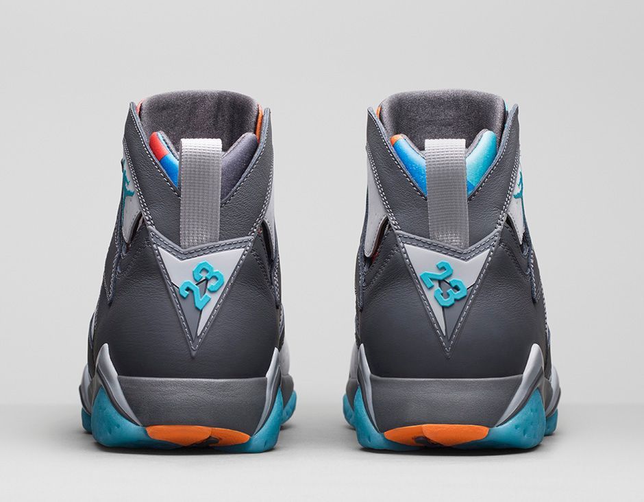 La celebrazione delle Air Jordan 7 continua inarrestabile nel 2015 con un tributo alla memorabile performance di Micheal Jordan nel 1992 per il Dream Team. Questa volta Jordan brand presenta un modello di AJ 7 Retro dal mix vincente di tonalità: base grey con inserti arancio, turchese e cremisi. La sneaker prende ispirazione dalla solare città di Barcellona, con i suoi colori accesi, tra sole e mare.