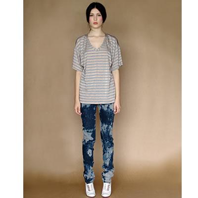 Altro trattamento 10 e lode del momento, il marmorizzato o acid wash che dir si voglia. Ad un occhio poco attento potrebbe risultare fratello gemello dello stone wash, in realtà è frutto di un finissaggio, ottenuto con un lavaggio in acqua,cloro e pietra pomice, che rende possibile l’effetto striato di contrasto tra il blu ed il bianco. Ricco di venature e riflessi, diventa irresistibile sulle tonalità più accese ed inaspettate.