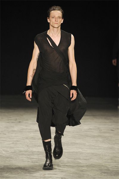 Dall’Australia, ci spostiamo a Parigi, dove si è insediato, ormai dal 2003, il re dell’avant garde e del goth mood, Rick Owens. Arte, musica e spontaneità le componenti fondamentali di una linea che fa del luxury textures e del high fashion il suo motivo guida. Total black per volumi sovrapposti, lunghezze asimmetriche ed abbinamenti volutamente unisex. Un visionario del dark, che sa rendere la pelle ed i tessuti garzati, dei pieces of art inimitabili ed irripetibili.