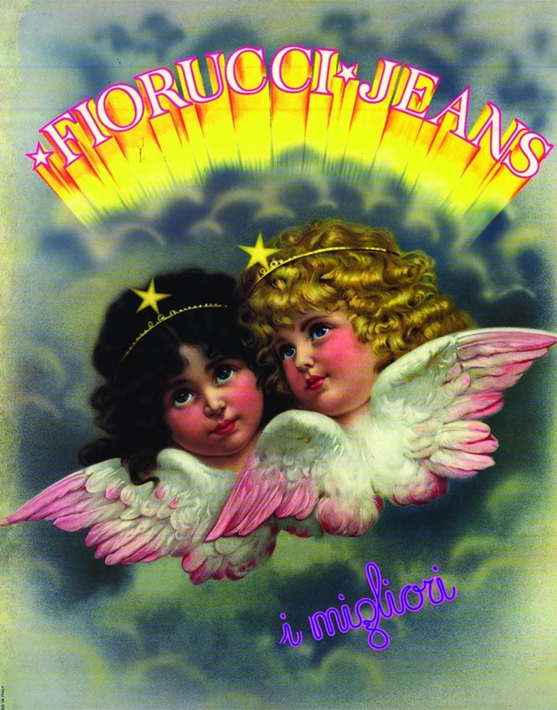 Fiorucci è stato il primo brand di moda a rivisitare un’immagine classica in chiave pop. I due paffuti angioletti vittoriani divennero l’emblema del marchio a livello internazionale e vennero stampati in serie su t-shirts, borse, accessori ed oggetti per la casa.
