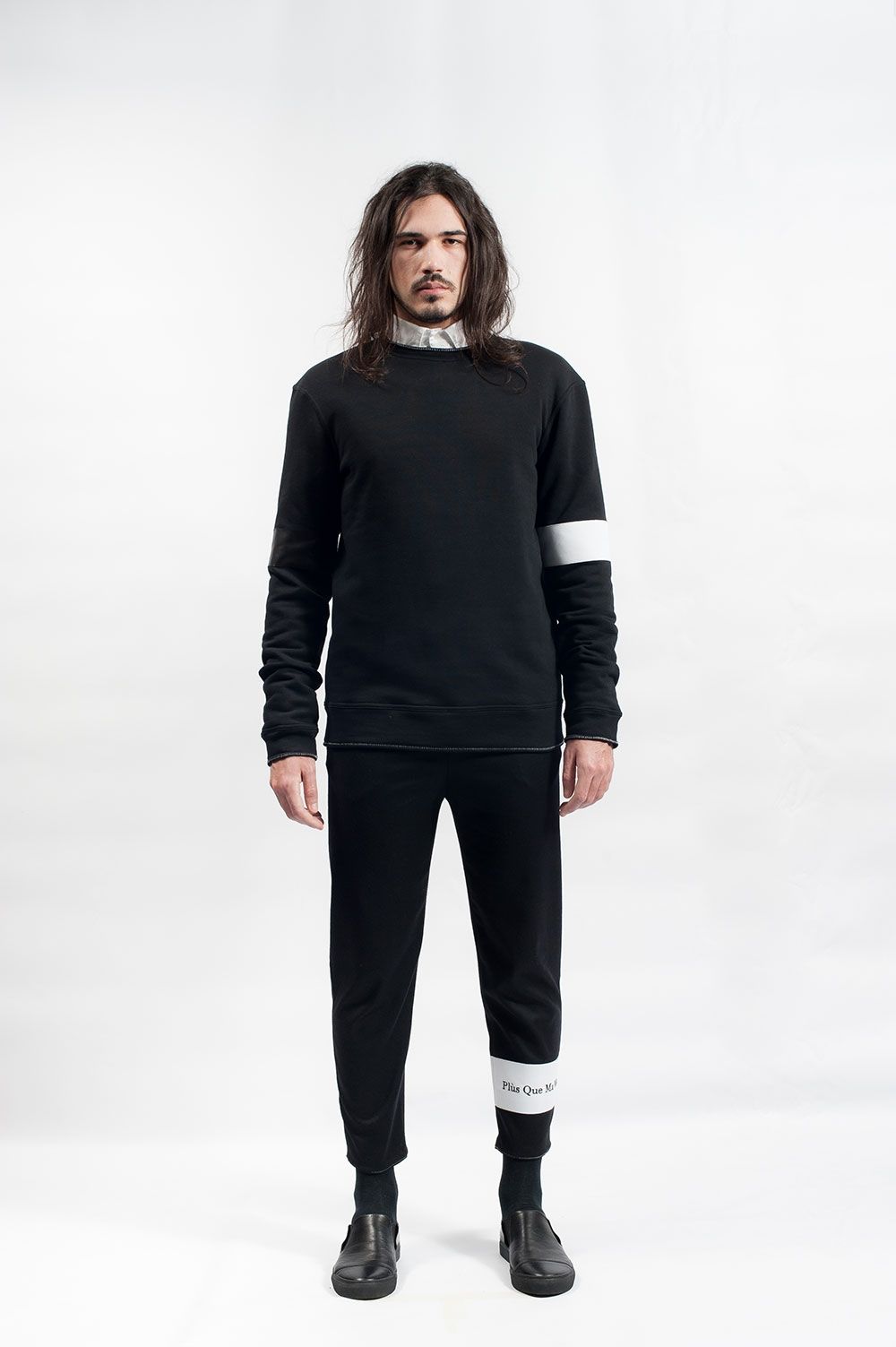 Plùs Que Ma Vìe nasce nel 2013 tra Milano e Venezia con lo scopo di proporre una moda proiettata al futuro ma con un forte legame con la formalità della tradizione sartoriale. Il nero è il carattere dominante del brand, e lo è anche della collezione autunno/inverno, intitolata “Oxymoron”.