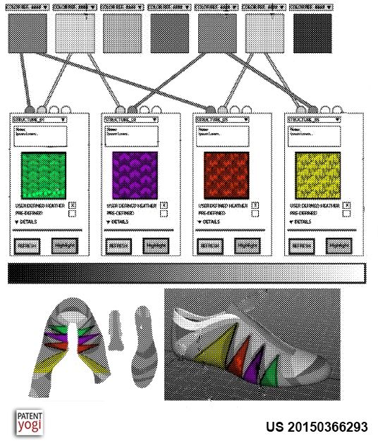Con il primo brevetto (US 20150366293) qualsiasi persona al mondo potrebbe avere la possibilità non solo di creare la propria unica combinazione di pattern e colori della tomaia Fliknit, ma anche di visualizzare la manifattura della scarpa step by step.