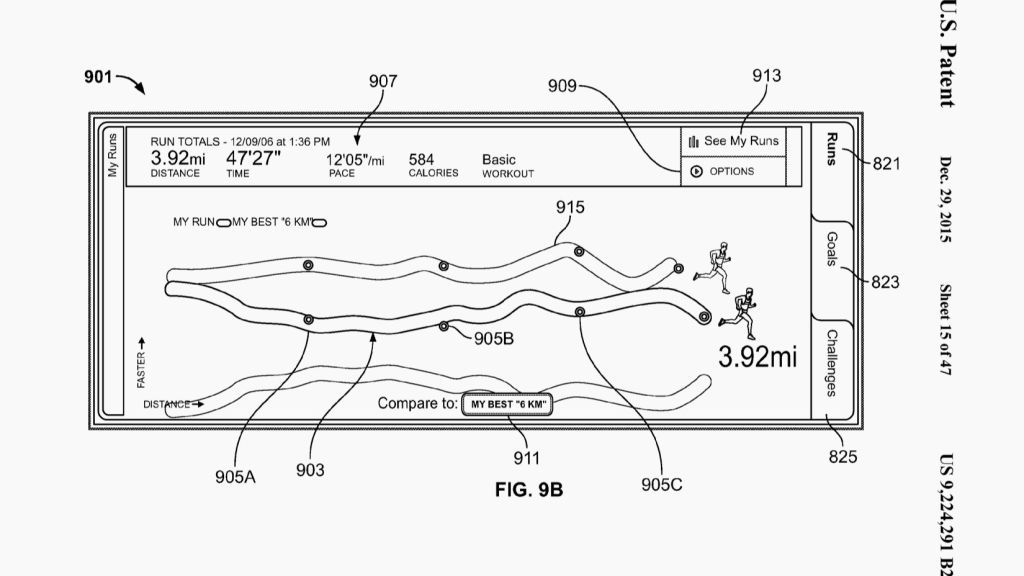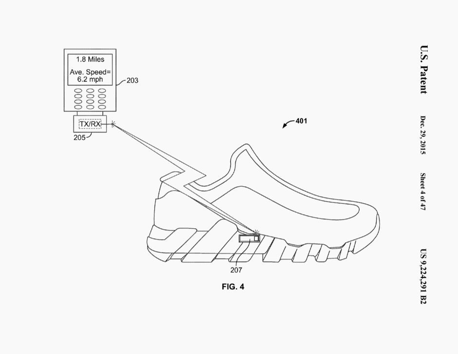 Con il secondo brevetto (US 9224291) Nike mostra una sneaker “smart” in grado di misurare parametri quali velocità (accelerazione e decelerazione), direzione di movimento e calorie bruciate, catturando così l’intera performance nei minimi dettagli. Nike potrebbe utilizzare queste informazioni per creare un percorso di corsa, permettendo di fissare degli obiettivi. Mentre molte persone apprezzano l’importanza dell’attività fisica, tante altre difficilmente trovano la motivazione richiesta per mantenere un programma regolare.