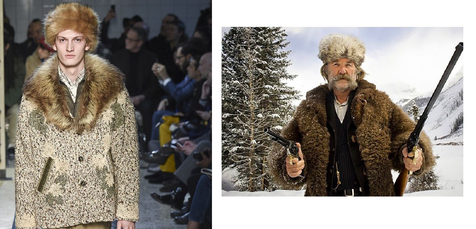 Sceglie di omaggiare il look dei protagonisti, mostrando in passerella cloni di Kurt Russell e Leonardo di Caprio. Uomini selvaggi, pelosi, ruvidi ma non troppo, griffati Dolce & Gabbana o Antonio Marras.