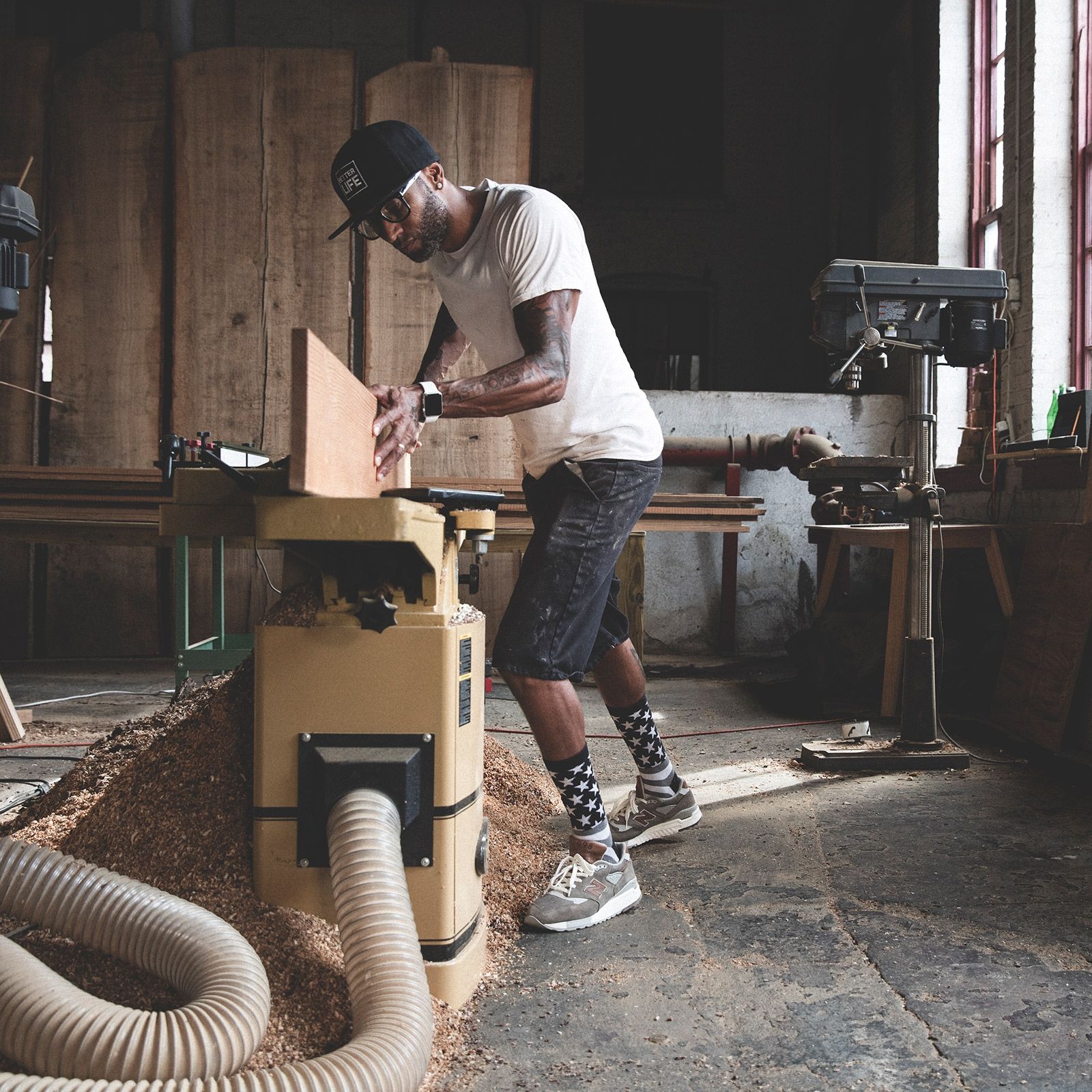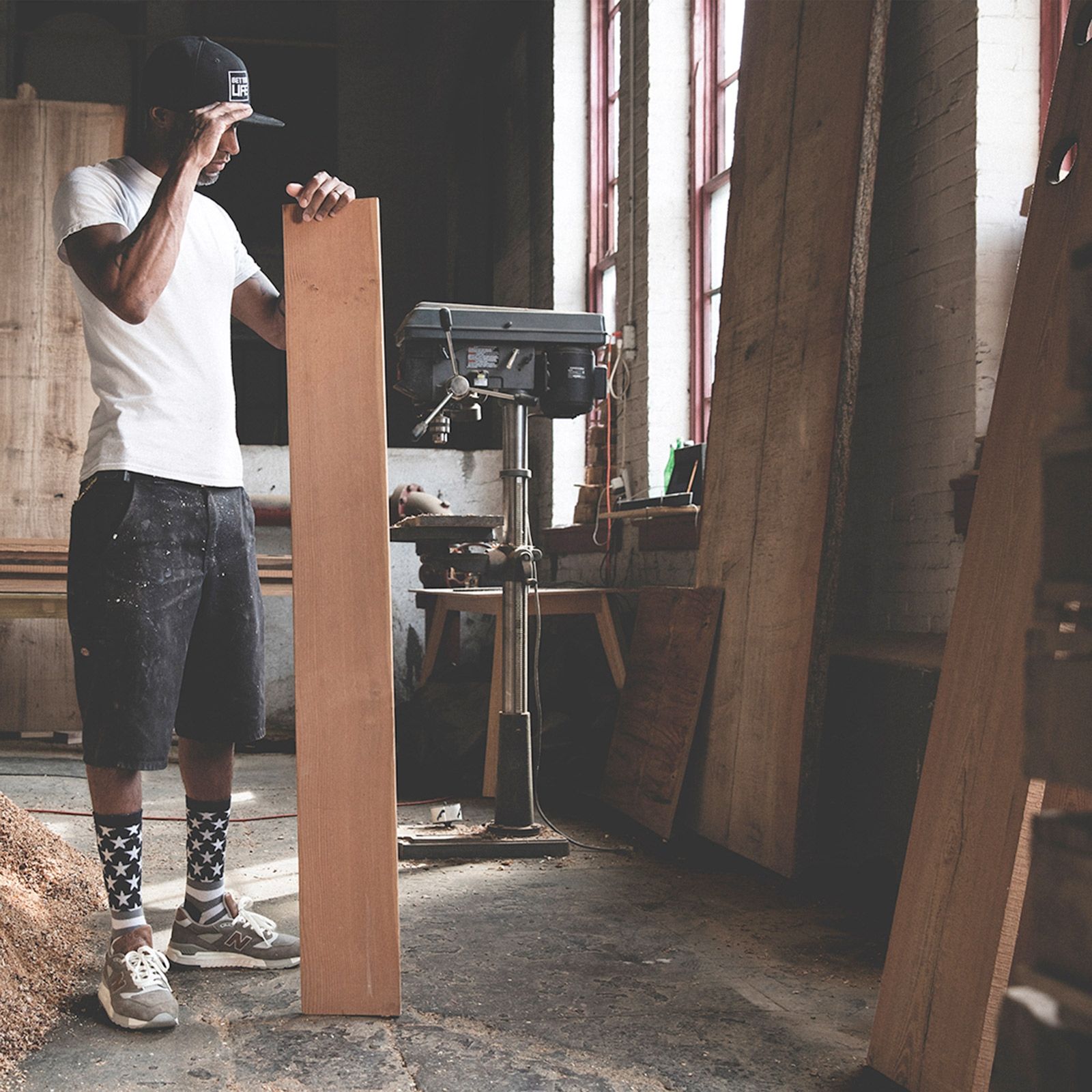 Per promuovere il lancio della capsule, New Balance ha collaborato con l’artigiano del legno Jermain Todd di Saint Louis, che crea mobili unici, chic ed eco-friendly, a partire da elementi riciclati.