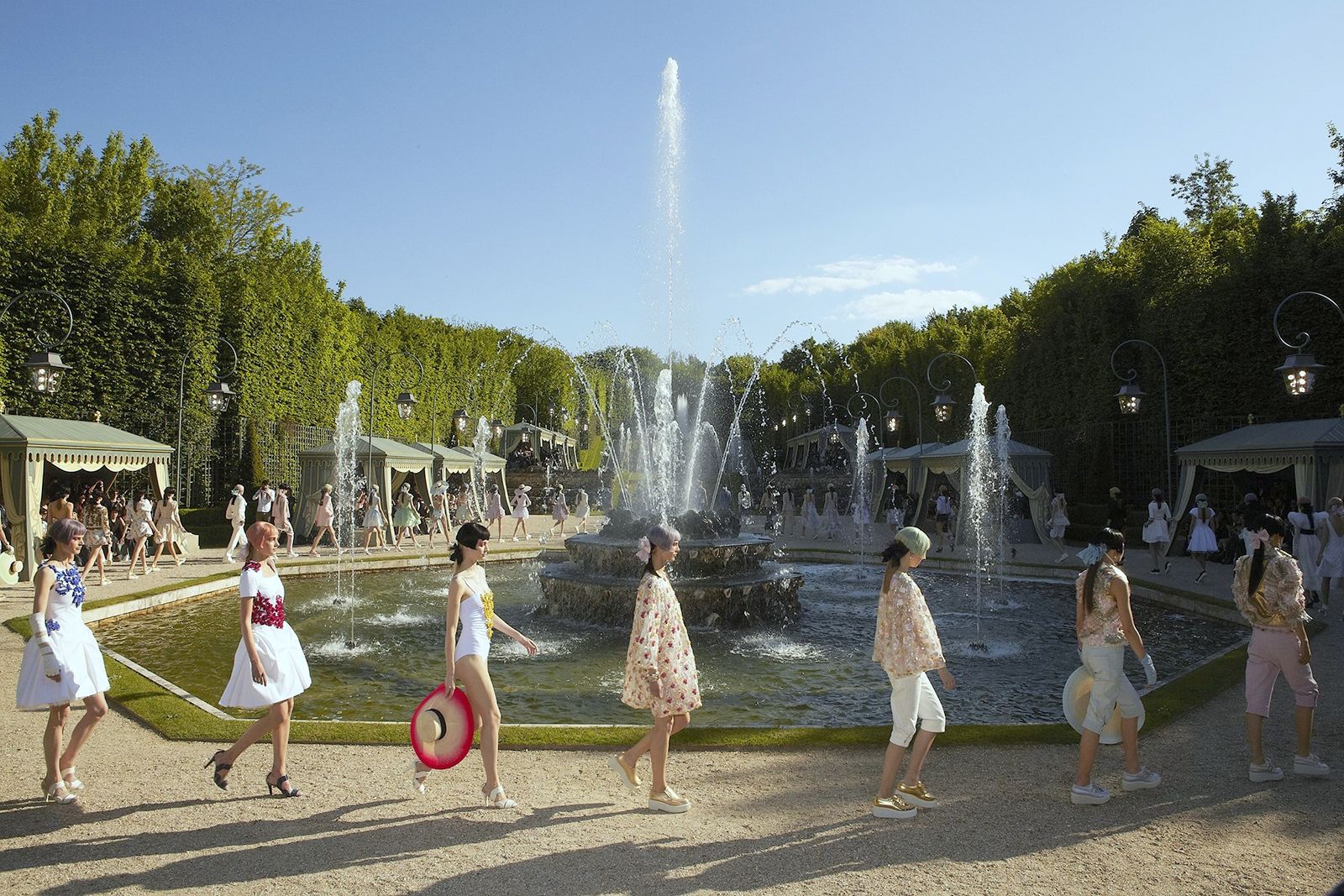Gucci, Louis Vuitton, Dior – l'unico a rappresentare un valido avversario con la bellissima sfilata al Palais Bulles di Pierre Cardin – cercano di rubare a Chanel il premio per gli eventi più spettacolari.