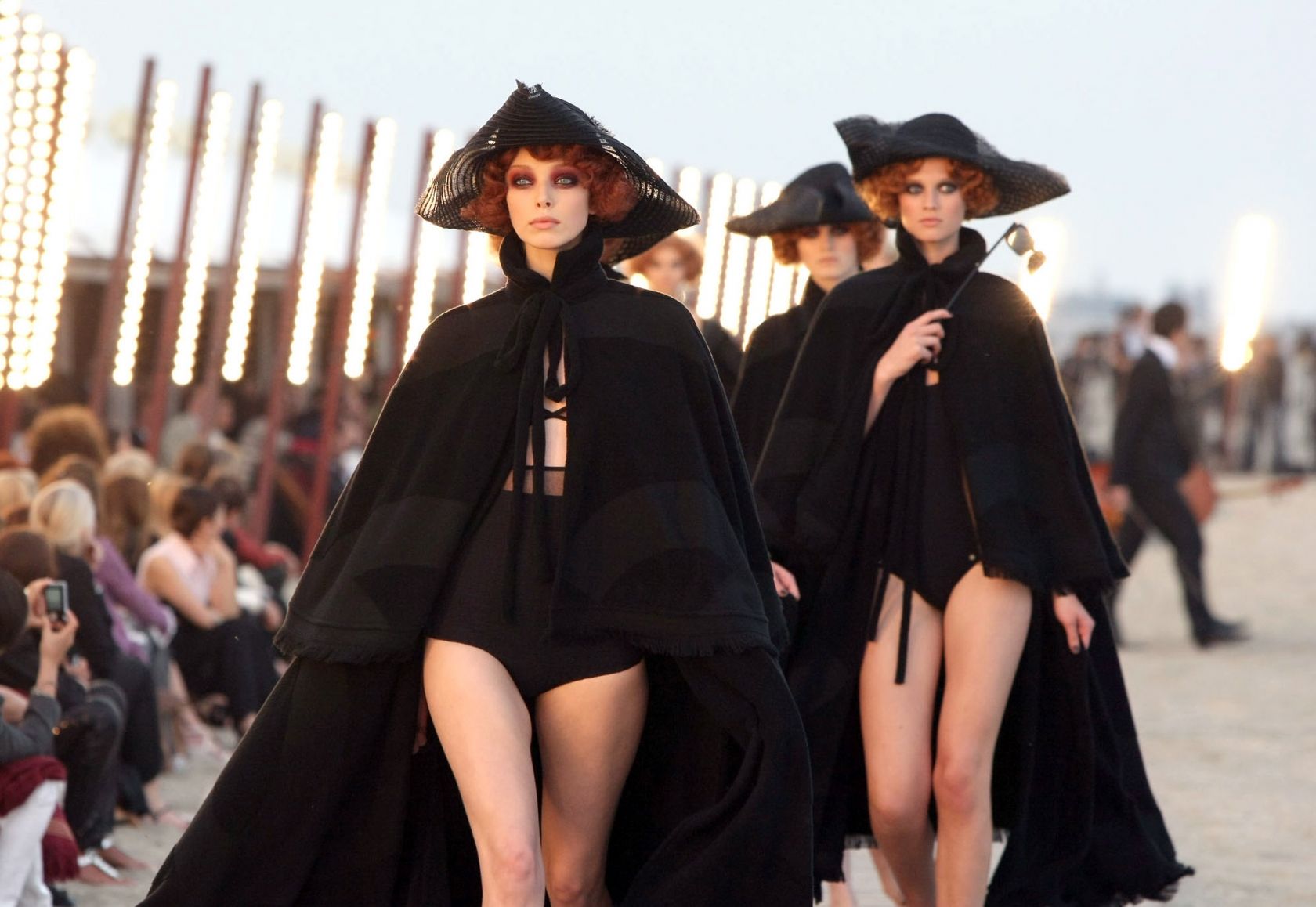 What: Le 52 modelle, tra le quali Bella Hadid, Jamie Bochert e Mariacarla Boscono, indossano calze a rete e sabot, completi bouclé, mantelle in lana, abiti mini, in un tripudio di bianco e nero.
