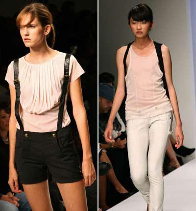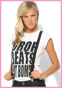 A partire dalla casa storica di Albert Thurston che ne produce dal 1820, passando per le grandi firme come Dior, Chanel, Dsquared e Chloe, fino alle nuove promesse come Morphine Generation e Luella, la parola d’ordine è “mantenere”, in ogni caso. Ecco luccicare i moschettoni delle bretelle, dunque, sugli shorts, sulle gonne, sui pantaloni larghi e su quelli stretti, per un look da broker di Wall Street per i ragazzi, e per un bon ton androgino per le ragazze. Ovviamente va da sé che i canoni di gusto, nel tempo, sono cambiati: ora viene concessa anche la bretella corta, su pantaloni a vita altissima, e quella super skinny, magari lucida da abbinare anche a tshirt e canotte. Insomma, la dogana è stata alzata per questo accessorio per tanti anni dimenticato, e bisogna anche approfittare delle innumerevoli varianti cheap reperibili nei mercatini vintage, senza dimenticare che alcuni stilisti hanno addirittura incorporato le bretelle nei capi d’abbigliamento, molto spesso in denim, variante questa che personalmente non preferisco, ma che comunque è da considerarsi degna di nota.