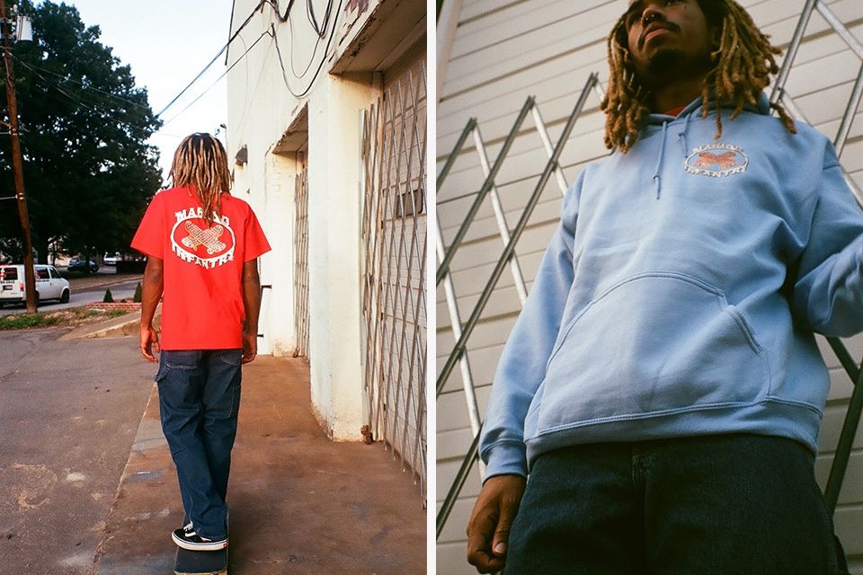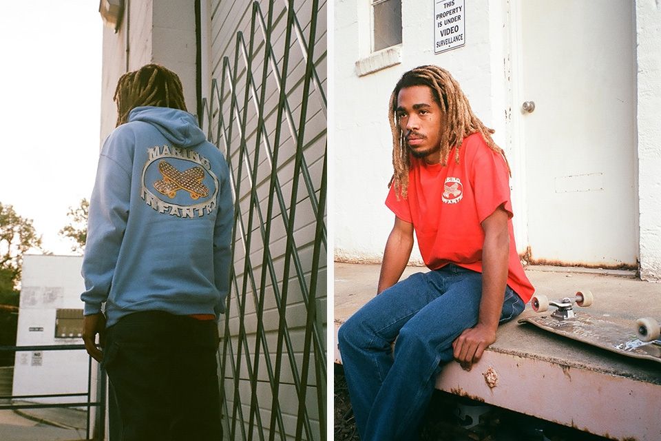La prima capsule collection include una felpa e due diverse t-shirt 100% cotone con logo Marino Infantry sul davanti e sul retro. A quanto pare il brand ha anche reclutato alcuni skaters professionisti, come Mason Padilla che appare anche in un video sul sito del marchio.