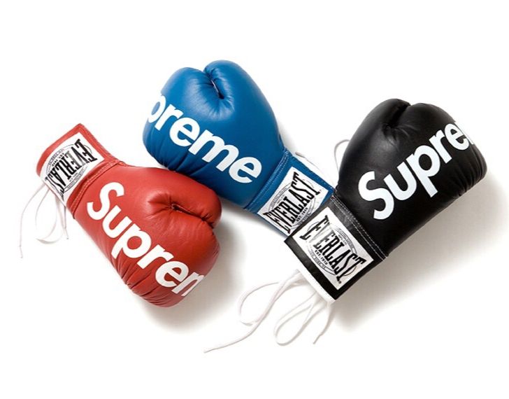 Un omaggio alla grande passione di James Jebbia, il pugilato. Questi guantoni sono nati nel 2008 dalla collaborazione Supreme X Everlast e disponibili in rosso, blu e nero.