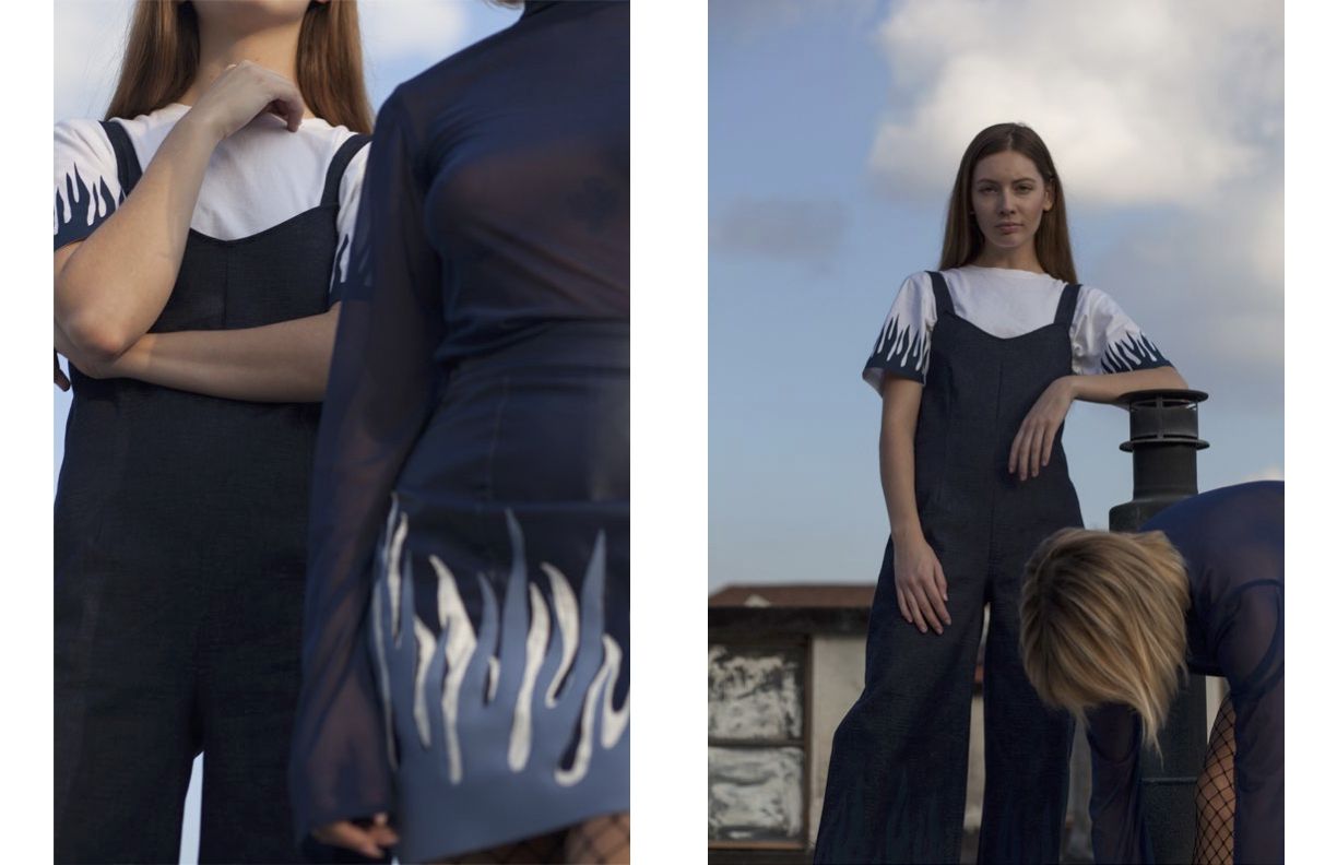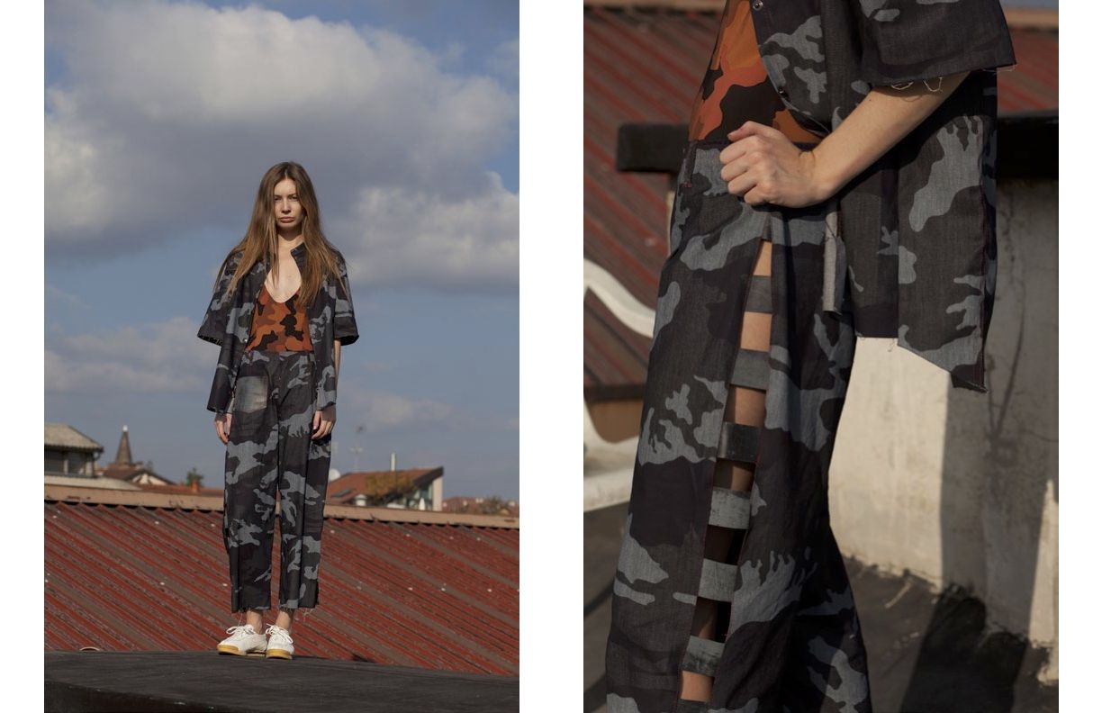 La capsule collection che vi mostriamo oggi in esclusiva sulle pagine virtuali di nss mag è un concentrato di pezzi graffianti e dinamici, pensati “per chi combatte ogni giorno nella giungla metropolitana.” Si tratta di capi estremamente attuali, che strizzano l’occhio al remake in chiave moderna della cultura grunge, prendendo tanto spunto dagli anni ‘90, tra cami dress indossati sopra maglie e felpe con le scritte gotiche, baschi bucket, camouflage e fiamme in ecopelle che dirompono su jeans e minigonne. Tutto rigorosamente fatto a mano.