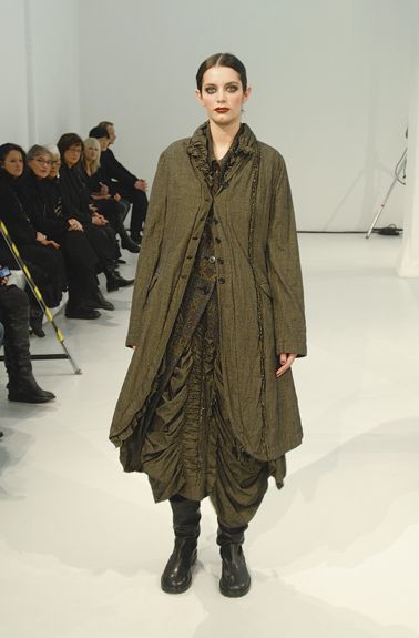 Partiamo dal basso, perché le scarpe hanno un ruolo fondamentale. Di regola stringate e spesso vertiginose, come quelle proposte da Fifth Avenue Shoe Repair, alternano i classici ed ormai consolidati anfibi, agli stilosi ankle boots e tronchetti di ogni sorta. Le streghe di oggi usano di rado i jeans o i pants, ma piuttosto optano per calze più o meno coprenti, alternate a leggins in tinte deep o in vinile. Diciamo che vengono preferite ampie gonne e maxipull, come quelli visti sulle passerelle del duo tedesco di Rundholz da sovraccaricare ed arricchire ancora di più con capispalla scampanati, di lunghezza media o lunga, necessariamente forniti di cappuccio ampio e a punta. Qualora il cappotto dei vostri sogni fosse sfornito dell’ultimo dettaglio citato, potete sempre salvarvi in extremis, adottando una sciarpa ad anello come hood di emergenza, che, in certi casi, risulta molto più versatile e ricca di fascino…da non sottovalutare insomma. Gli accessori sono la parte più divertente e con meno costanti in assoluto. Borse over e loose che si vanno a confondere tra i tanti volumi indossati. Spille, anelli e collane di ispirazione barocca e nelle tinte dell’ottone e del rame, da puntellare qua e la, lungo tutta la figura. Guanti a mezze dita e bracciali ciondolanti ricchi di monetine ed amuleti vari. Se poi volete divertirvi sul serio, il gioco con i tessuti è infinito, passando dalla lana intrecciata, a quella pettinata, fino ad adottare rifiniture in tulle e pizzo e dettagli fur, che con questo freddo non guastano mai.