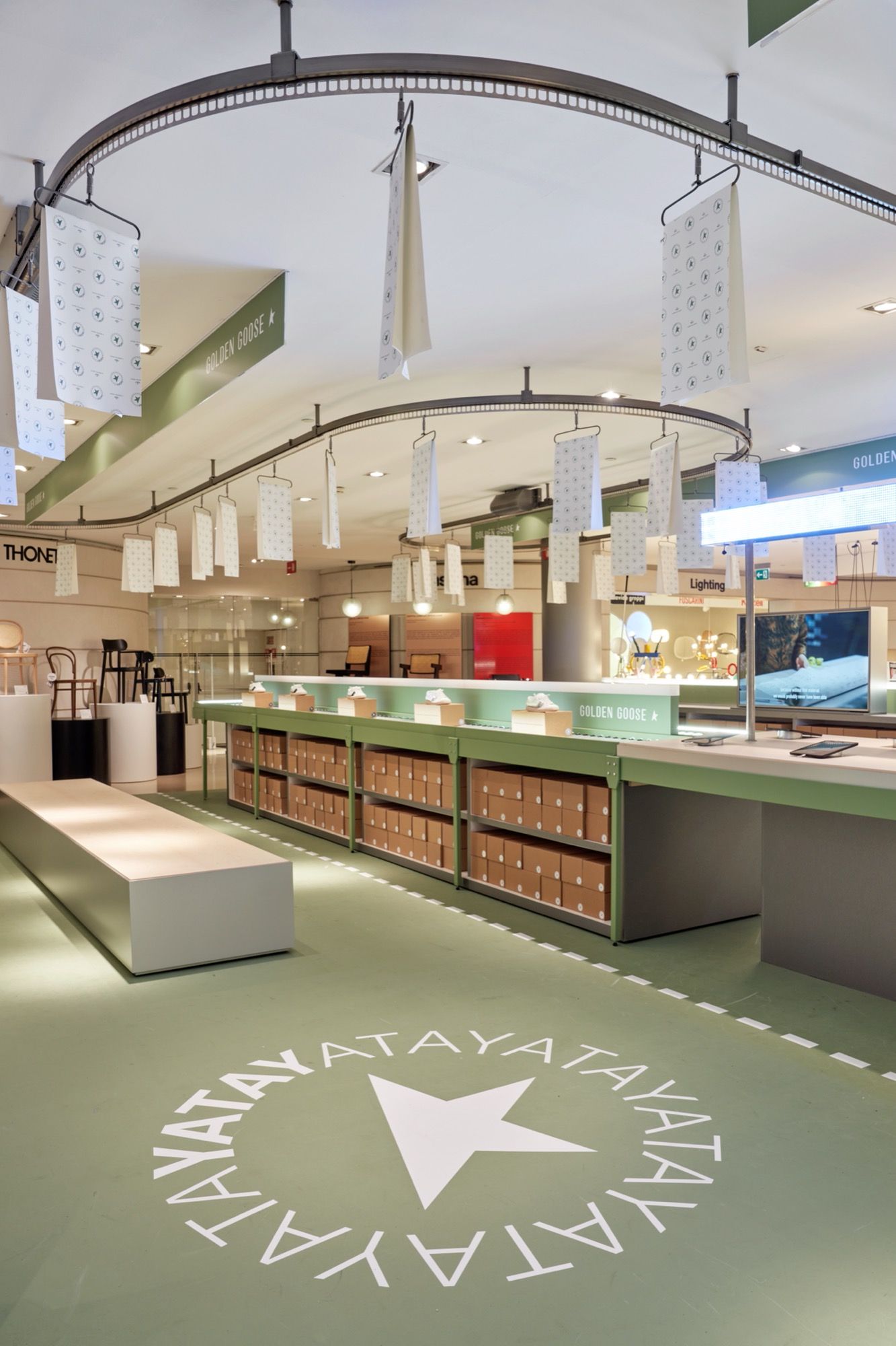 Lungo le vetrine di Corso Vittorio Emanuele, presso La Rinascente Milano, Golden Goose ha esposto la Yatay Box, la prima sneaker box totalmente riciclata e riciclabile che riduce l’impatto ambientale unendo scatola da spedizione e packaging in un unico oggetto.