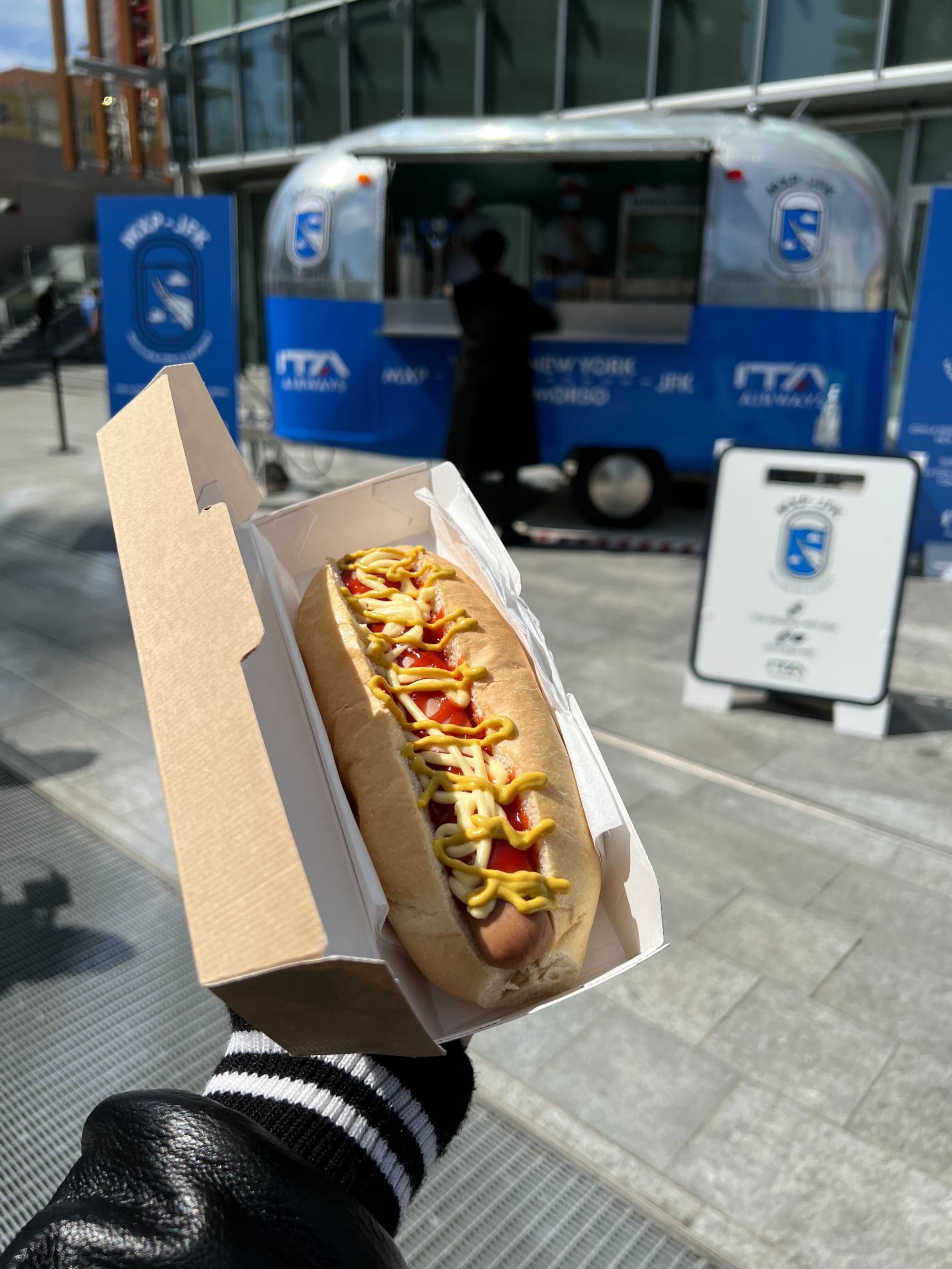 Grazie alla nuova rotta MXP/JFK di ITA Airways, Milano e New York sono più vicine che mai. Per celebrare l'apertura della nuova rotta Milano Malpensa-New York, ITA Airways ha portato in città uno degli elementi più iconici e amati degli States: l’hot dog. Lo street food americano per eccellenza, rappresentativa dell'immaginario americano poiché evoca immagini di uomini d'affari in giacca in fila davanti al carretto che fa angolo su Wall Street, approda nella metropoli milanese pronto a risvegliare il nostro desiderio di scoprire nuove mete dopo anni di isolamento tra le mura di casa.
