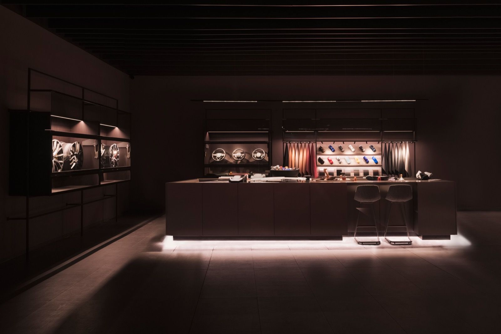Un nuovo concept architettonico all’avanguardia creato in collaborazione con lo studio newyorkese di “experience design” Eight Inc., che segna un taglio netto con la tradizionale estetica “luminosa e asettica” degli autosaloni. L’ambiente, attraente e dominato dalla bellezza italiana, presenta le auto illuminate come sculture dinamiche in una galleria d’arte in penombra. «In Maserati, tutto è progettato pensando al cliente, dalle prime fasi di sviluppo di una nuova vettura, fino ad una esperienza retail di lusso. Il nostro nuovo store concept incarna i nostri valori di passione, innovazione e bellezza rimanendo fedele al vero spirito del lusso italiano. Il nostro desiderio è che i clienti possano esprimere creatività e passione, creando una Maserati veramente adatta alle proprie esigenze» ha dichiarato Davide Grasso, CEO di Maserati.