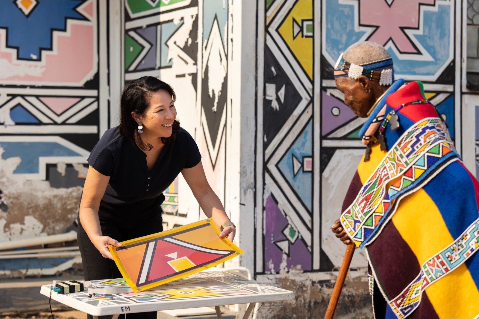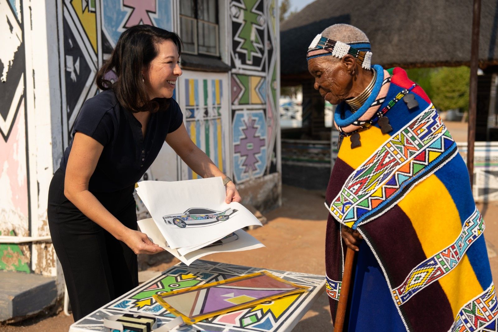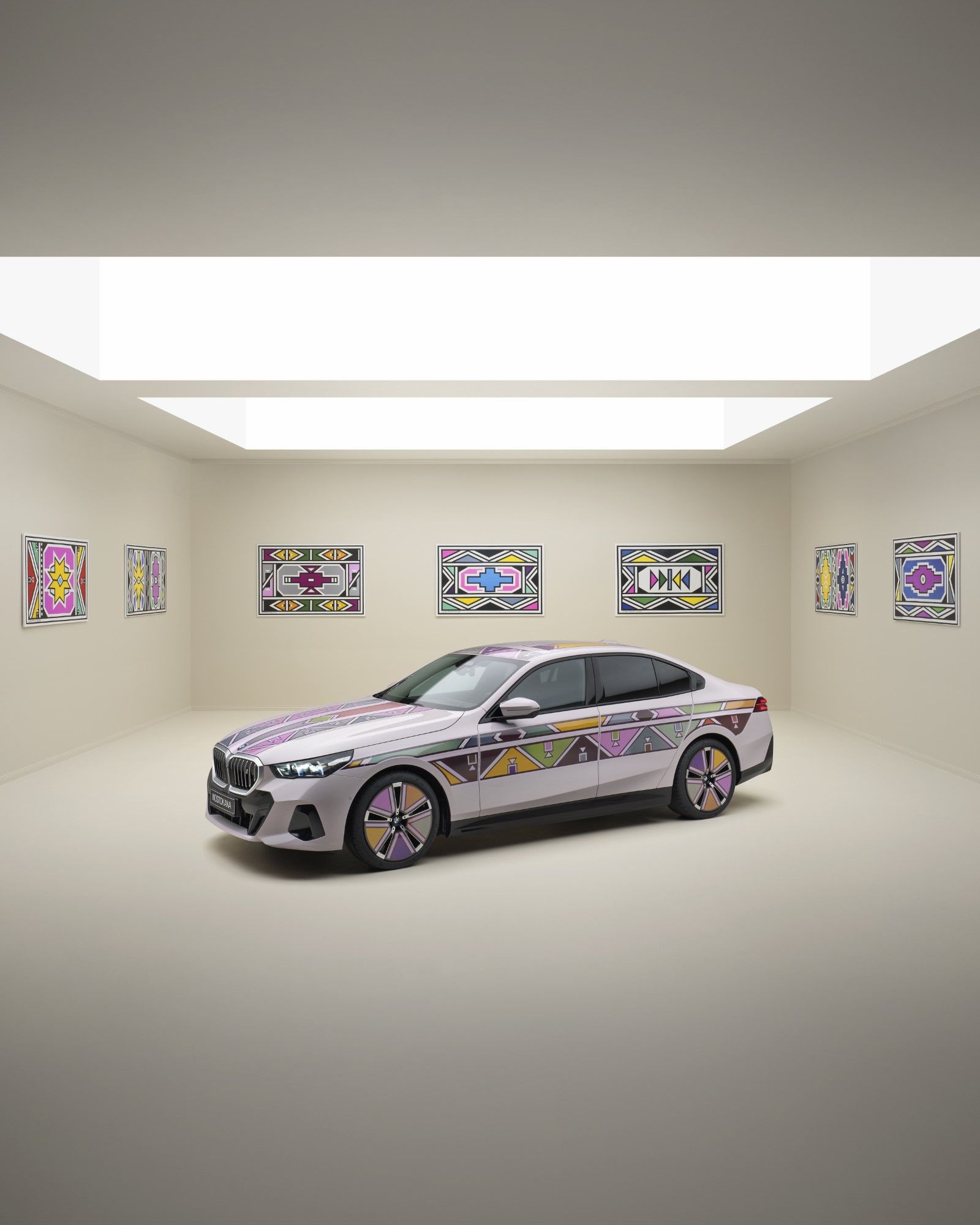 BMW porta gioia al Frieze LA con l'artista Esther Mahlangu Per una versione d'artista della classica BMW i5 Flow NOSTOKANA