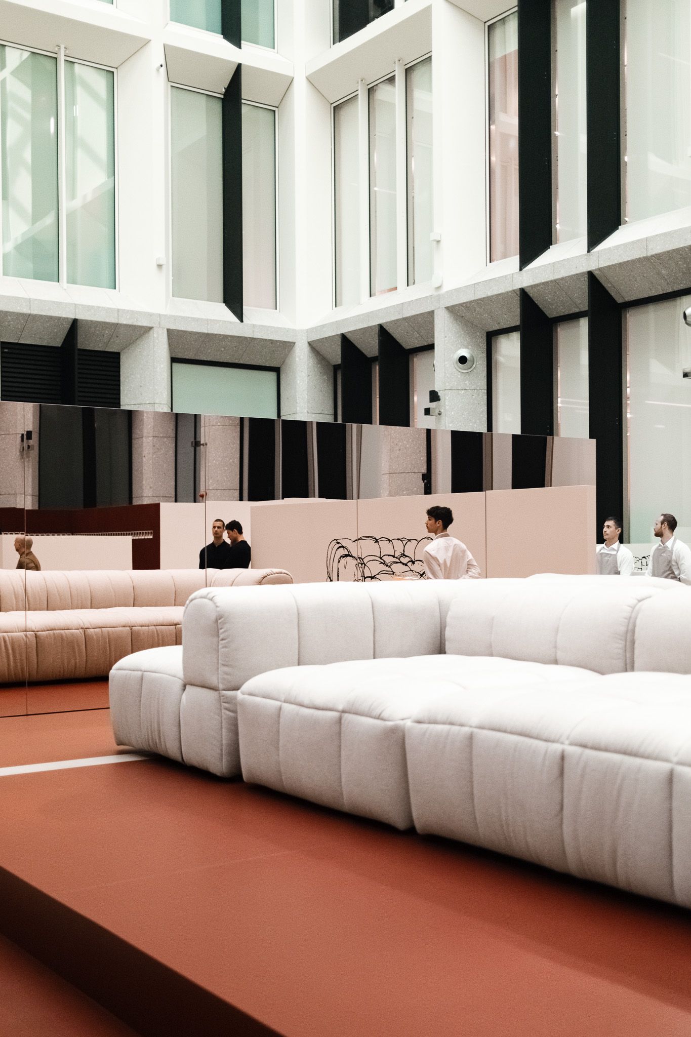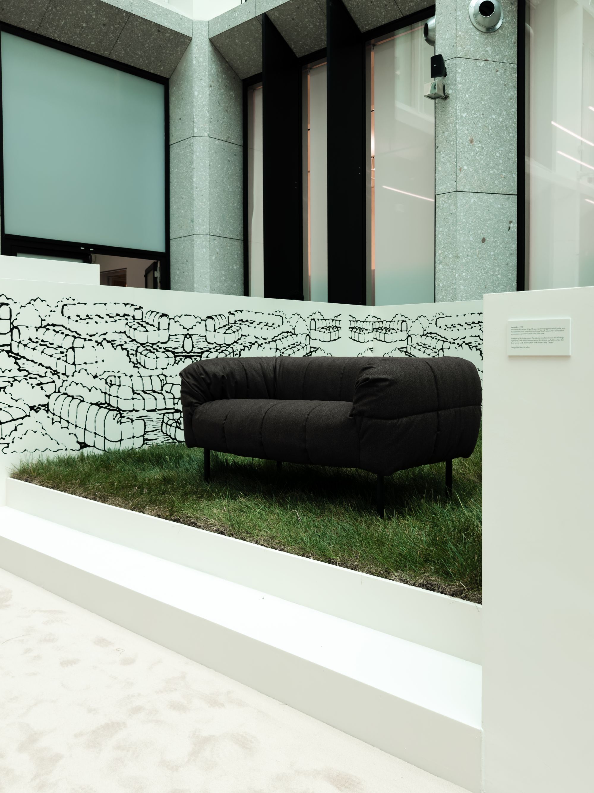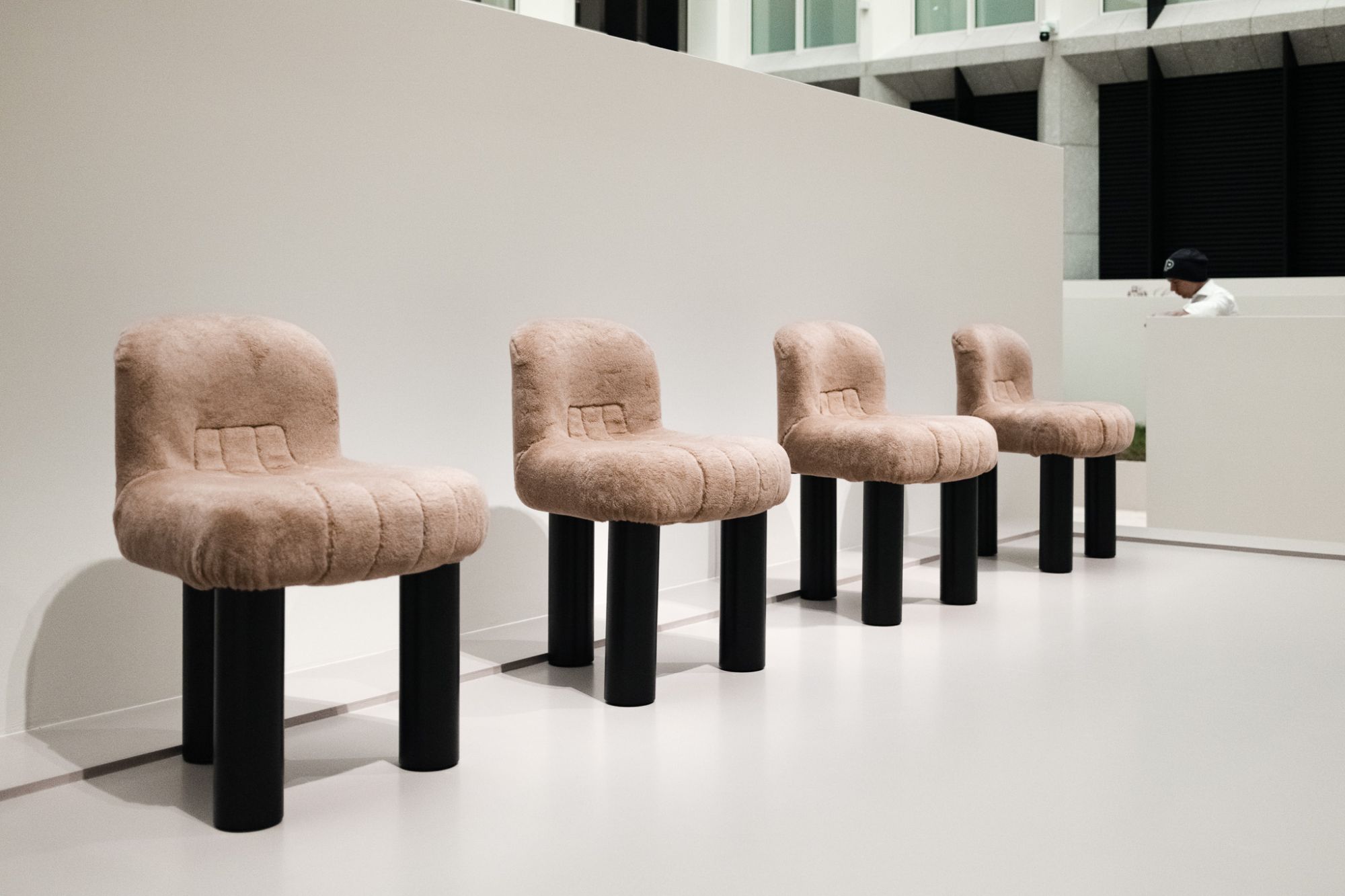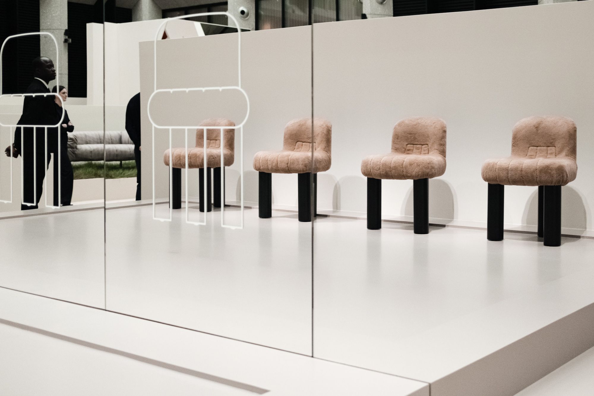L'installazione, creata in collaborazione con l'Archivio Cini Boeri, segue uno dei principi guida della filosofia della leggendaria architetta: l'idea della casa con stanze separate rappresentate da diverse piattaforme attraverso cui muoversi e un'area comune, dove gli abitanti si riuniscono per scelta, non per imposizione. L'area centrale dell’exhibition ospita il celeberrimo sistema Strips, mentre gli ambienti circostanti sono dedicati a diverse famiglie di prodotti la cui comunanza è espressa dal fatto che i diversi ambienti sono collegati a un nucleo centrale. Il percorso è interattivo e invita gli ospiti a sperimentare la forma dei mobili e la texture dei tessuti che li foderano e a interagire con essi, seguendo l'insegnamento di Cini Boeri che voleva mobili in grado di adattarsi alle esigenze degli utilizzatori. Esplorando le diverse sezioni dell’installazione, i visitatori scopriranno una vera antologia dei migliori lavori firmati da Cini Boeri: il già citato sistema modulare Strips, vincitore del Compasso d'Oro nel 1979; il letto Strips, le poltrone Pecorelle, Bobo e Boborelax e le sedie Botolo alte e basse. Queste ultime sedute, nello specifico, sono rivestite con il morbido Cashfur in cashmere e seta, dando vita a una serie limitata di 100 pezzi che rappresenta anche la creazione di un vero pezzo da collezione. Per il divano modulare Strips, invece, è stato scelto il Cashmere Raw, mentre il letto Strips ricoperto da una trapunta che si estende a ricoprire l'intero pavimento della sezione è rivestito in lana Tiepolo. Le poltrone Pecorelle, esposte su un prato erboso, sono invece rivestite dal tessuto Pecora Nera®, ottenuto dal vello di pecore merino neozelandesi.