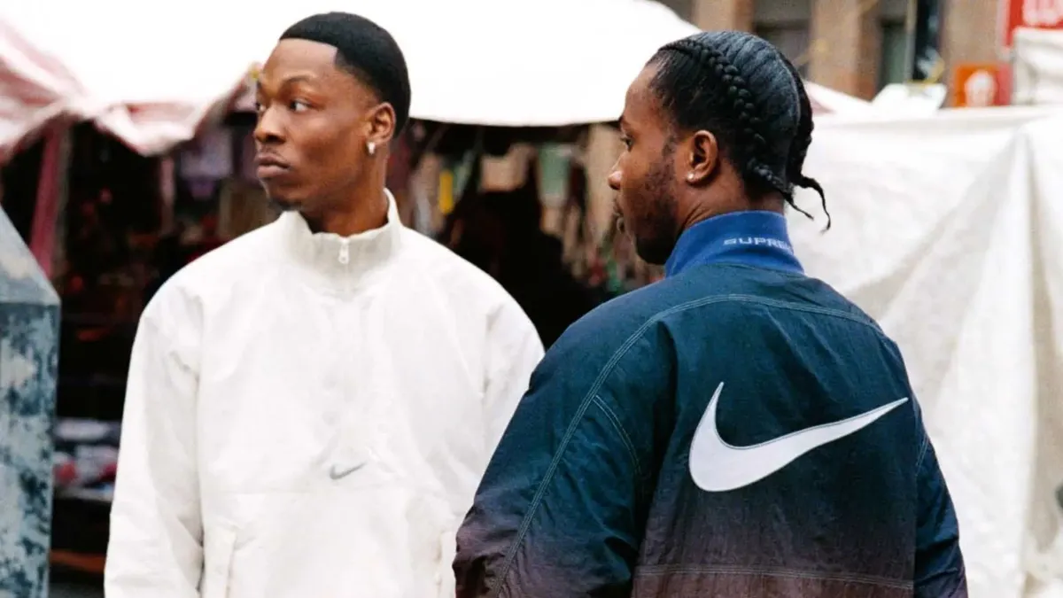 Al culmine narrativo del film, troviamo Vinz, Saïd e Hubert su un balcone con una vista mozzafiato su Parigi: Vinz indossa una giacca da aviatore MA-1, Saïd opta per un bomber in pelle sopra la sua tuta da ginnastica, mentre Hubert indossa pantaloni militari e una giacca in shearling, completati da un berretto Carhartt. L’abbigliamento è parte integrante della loro caratterizzazione: Vinz – represso, emotivamente impotente – è avvolto dalla sua tuta Nike come se fosse un guscio protettivo; Hubert, invece, indossa abiti Carhartt e Everlast indicativi della sua rabbia e ferocia. Tracksuit firmate Everlast, Sergio Tacchini e Fila si accostano a capi caratteristici del workwear americano come Carhartt e Dickies, mentre giacche in shearling e vecchi cappotti, probabilmente passati da padri e nonni spezzando la coerenza degli ensemble. Mondi distinti tra loro coesistono in look che non solo hanno rappresentato fedelmente le mise dei ragazzi di strada, ma hanno anche ispirato i designer nel definire il menswear contemporaneo. Le tute messe sotto i cappotti, quasi una sorta di uniforme, sono una vera e propria anticipazione del concetto anti-luxury. Lo styling volutamente disfatto, casuale, sarebbe stato al centro della rivoluzione streetswear dieci anni dopo, sotto la spinta di Gosha Rubchinskiy e Demna Gvasalia. Adam Wrey su ssense ricorda invece la giacca targata Notre Dame University indossata da un poliziotto nel film, perfettamente rappresentativa della fascinazione che la cultura collegiale americana avrebbe esercitato su un’intera generazione. Notre Dame, un'università cattolica americana fondata da un sacerdote francese nel XIX secolo, ha prodotto capi d’abbigliamento che sarebbero successivamente rimbalzati in Europa come simbolo giovanile dell'America. Nel 2002, Raf Simons avrebbe presentato la collezione "Virginia Creeper", cristallizzando il trend nel mainstream con la felpa 'Nebraska', ispirata all’immaginario collegiale.
