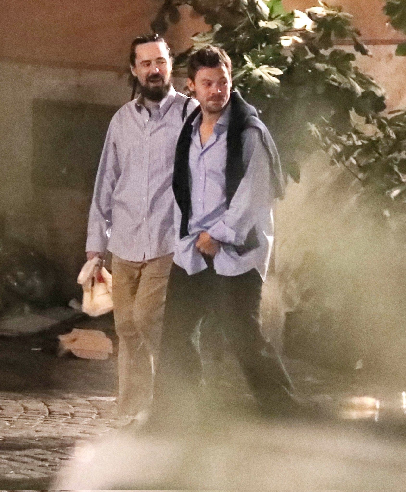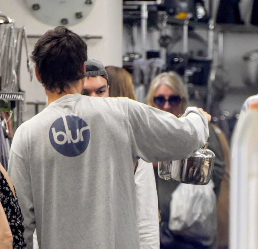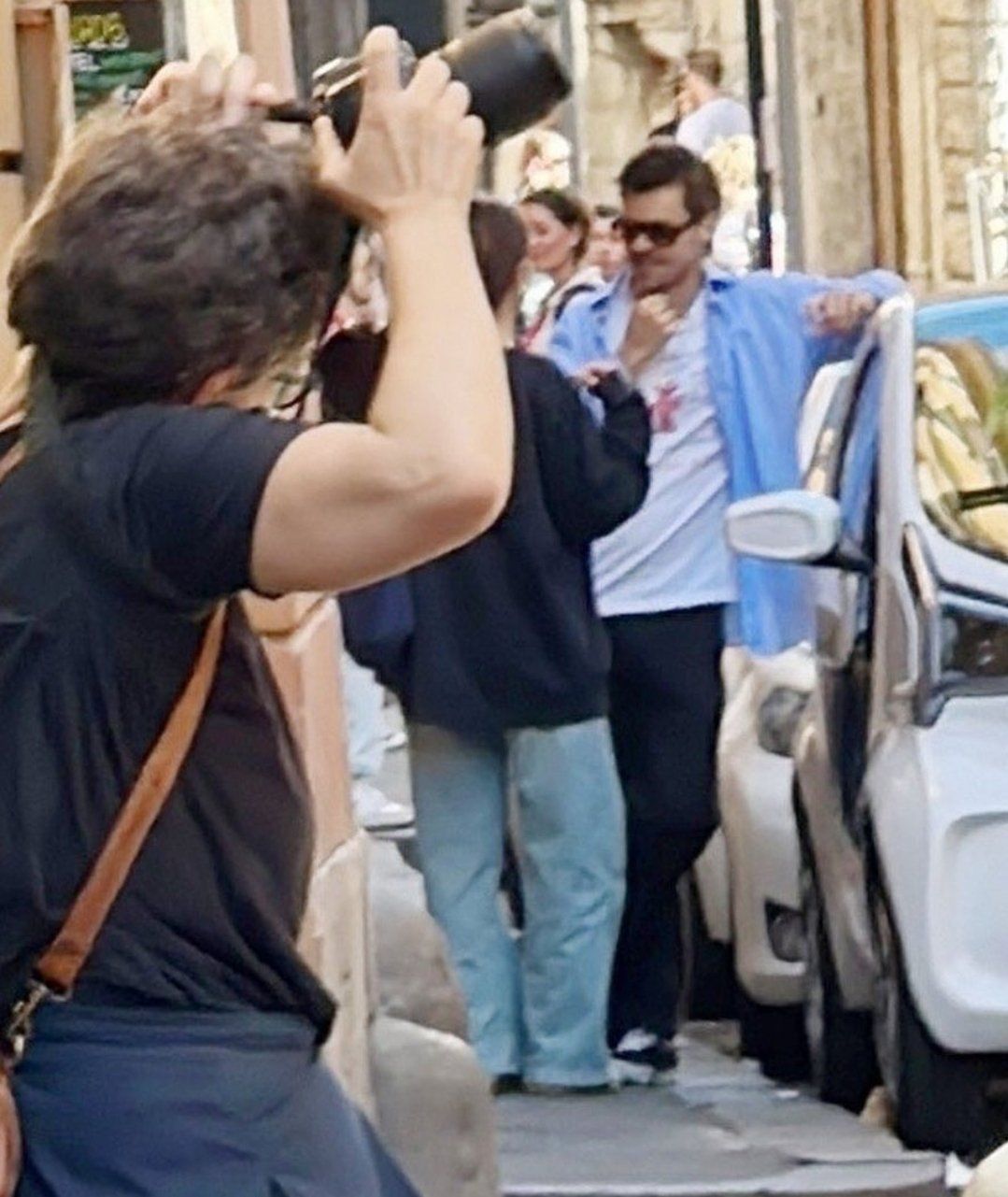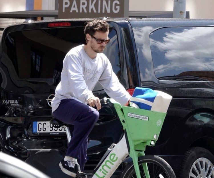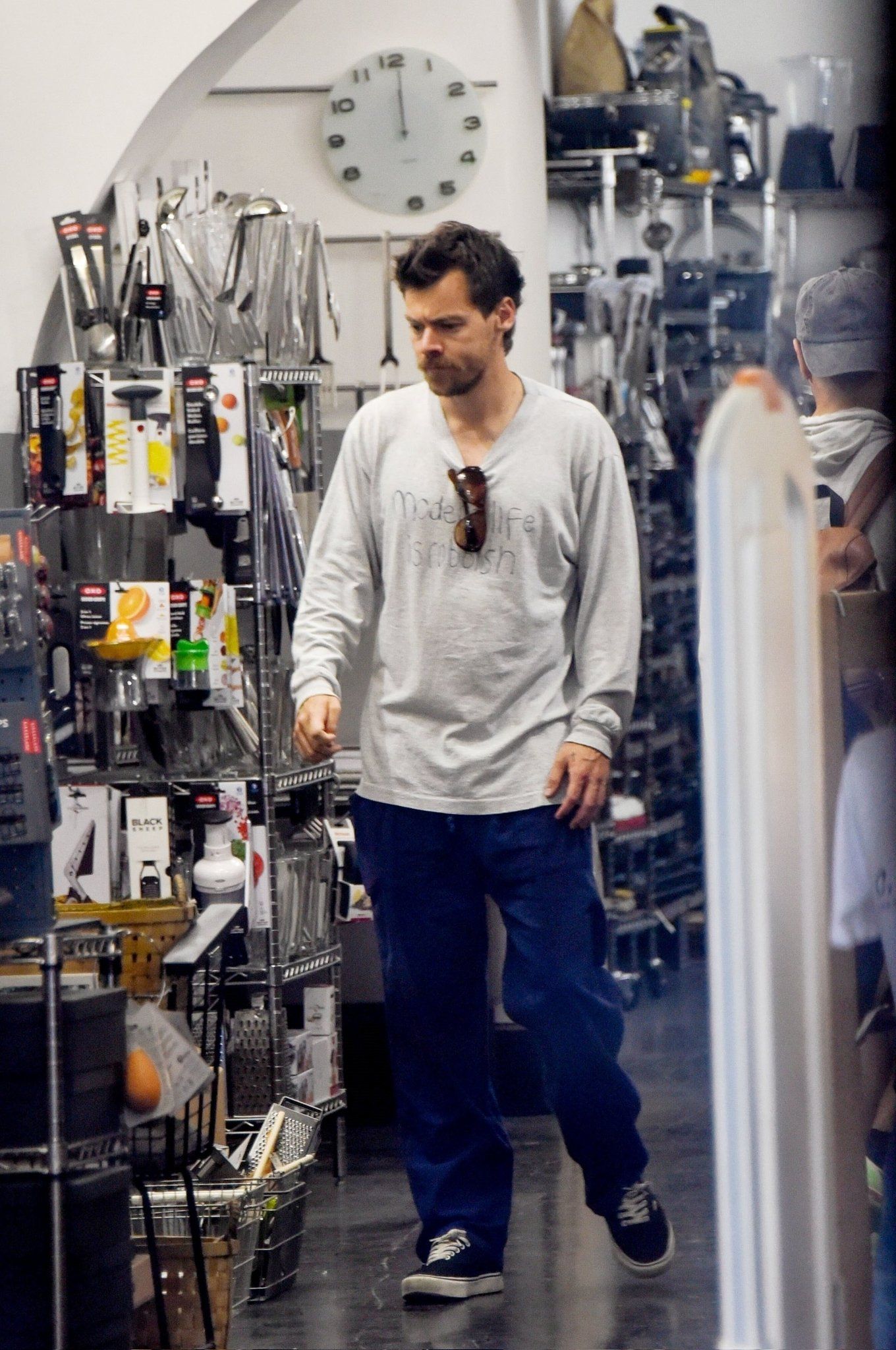 L’ultima volta che avevamo visto i due creativi insieme era nel 2022, prima che Michele lasciasse la direzione creativa di Gucci. Styles non è solo un grande amico del designer, ma anche una grande fonte di ispirazione, forse la stessa che vedremmo evocata nelle nuovi collezioni dello stilista romano per Valentino. Il cantante, ex membro degli One Direction, contattò Michele prima di lanciare la sua carriera da solista, nel 2017, e da allora ciascuno dei loro progetti ha fortemente contribuito alle scelte artistiche dell'altro, dai look realizzati per i tour mondiali di Styles a collezioni come Gucci HA HA HA, ultimo "frutto" che hanno coltivato per il brand. La tagline della collaborazione era “Via libera alla vanità”, e in effetti comprendeva silhouette e grafiche audaci, dai kilt ai dettagli a forma di orsetto, dalla maglieria rosa ai pantaloni anni ’70 rigorosamente a zampa. Oltre al look da papà imprenditore, nella sua vacanza romana Styles ha indossato un outfit che comprendeva Vans Authentic, pantaloni blu e una maglia dei Blur a maniche lunghe grigia con il titolo dell’album Modern Life Is Rubbish, e un’altra camicia azzura, questa volta lasciata aperta sopra una t-shirt bianca. Nessun orecchino, nessuno smalto colorato: del suo vecchio stile resta un grande paio di occhiali da sole, a goccia, ma anche quelli in colori neutri.