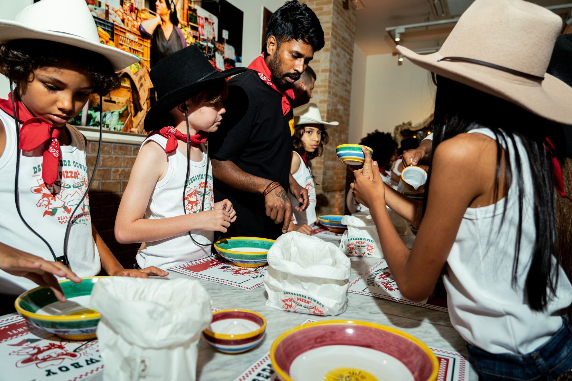 Nel cuore del Rione Sanità a Napoli, lo scorso 15 luglio il marchio di Dean e Dan Caten ha festeggiato la nuova collezione kids con un evento targato nss. La storica pizzeria Concettina ai Tre Santi si è trasformata in un vecchio ranch, piena di piccoli cowboy e cowgirl accessoriati in stile Far West: canotte personalizzate, shorts in denim, stivali camperos e bandane rosse. Anche i fondatori del brand erano abbinati ai più piccoli, vestiti con le T-shirt dal tagline “Dean & Dan Love Naples”. L'evento ha unito elementi ed estetica Western con un'atmosfera e un allestimento tipicamente napoletani, creando un'esperienza unica e indimenticabile.