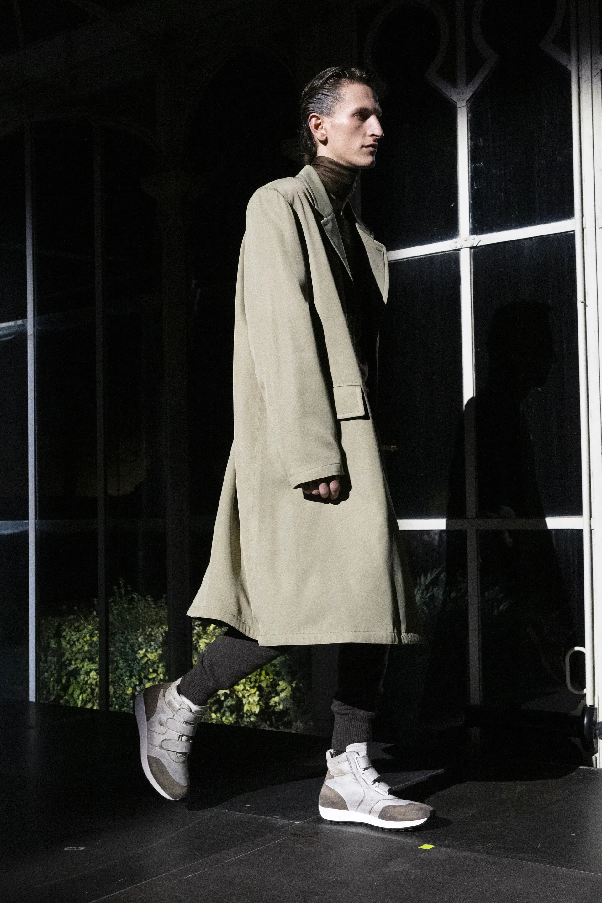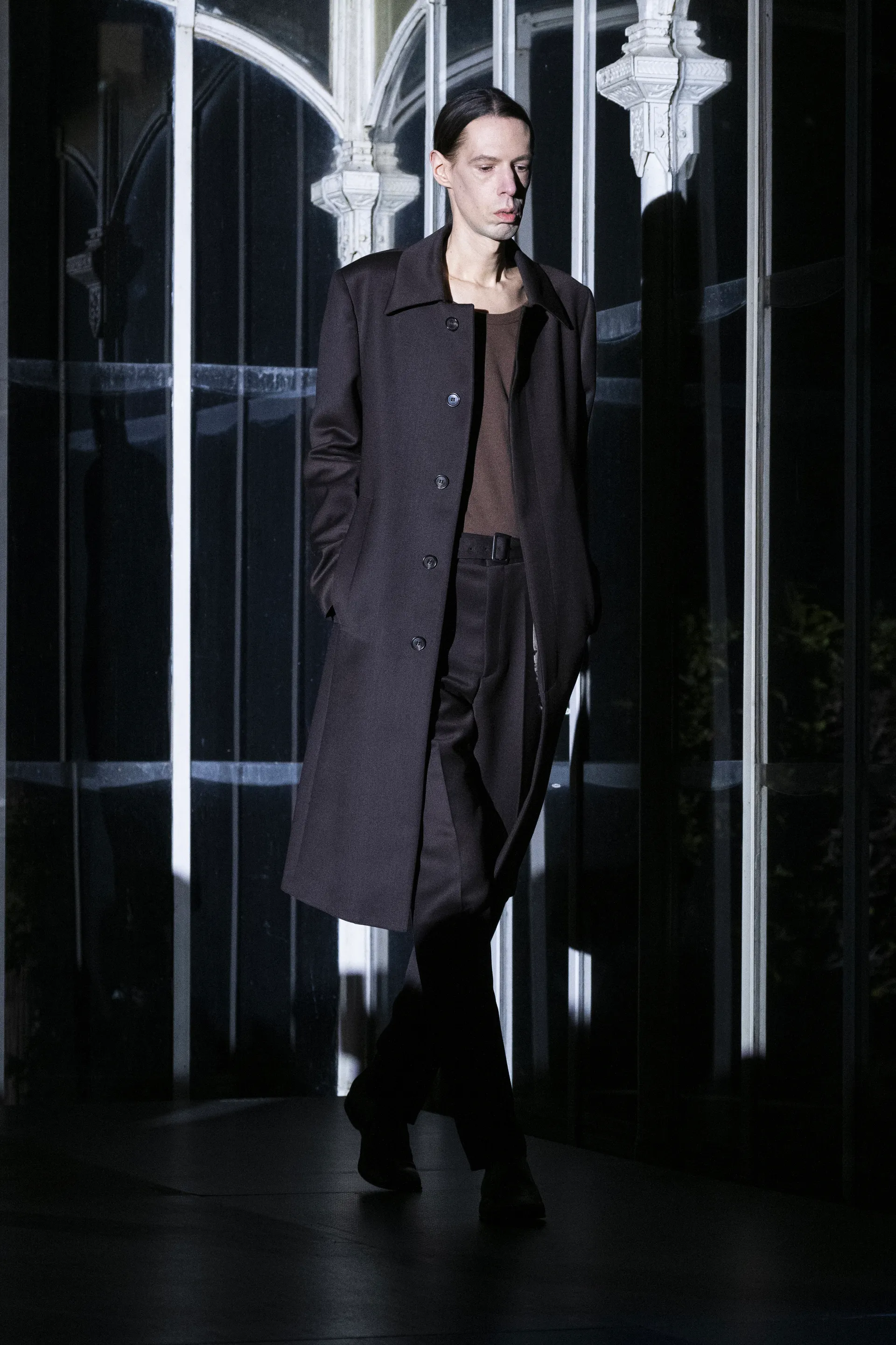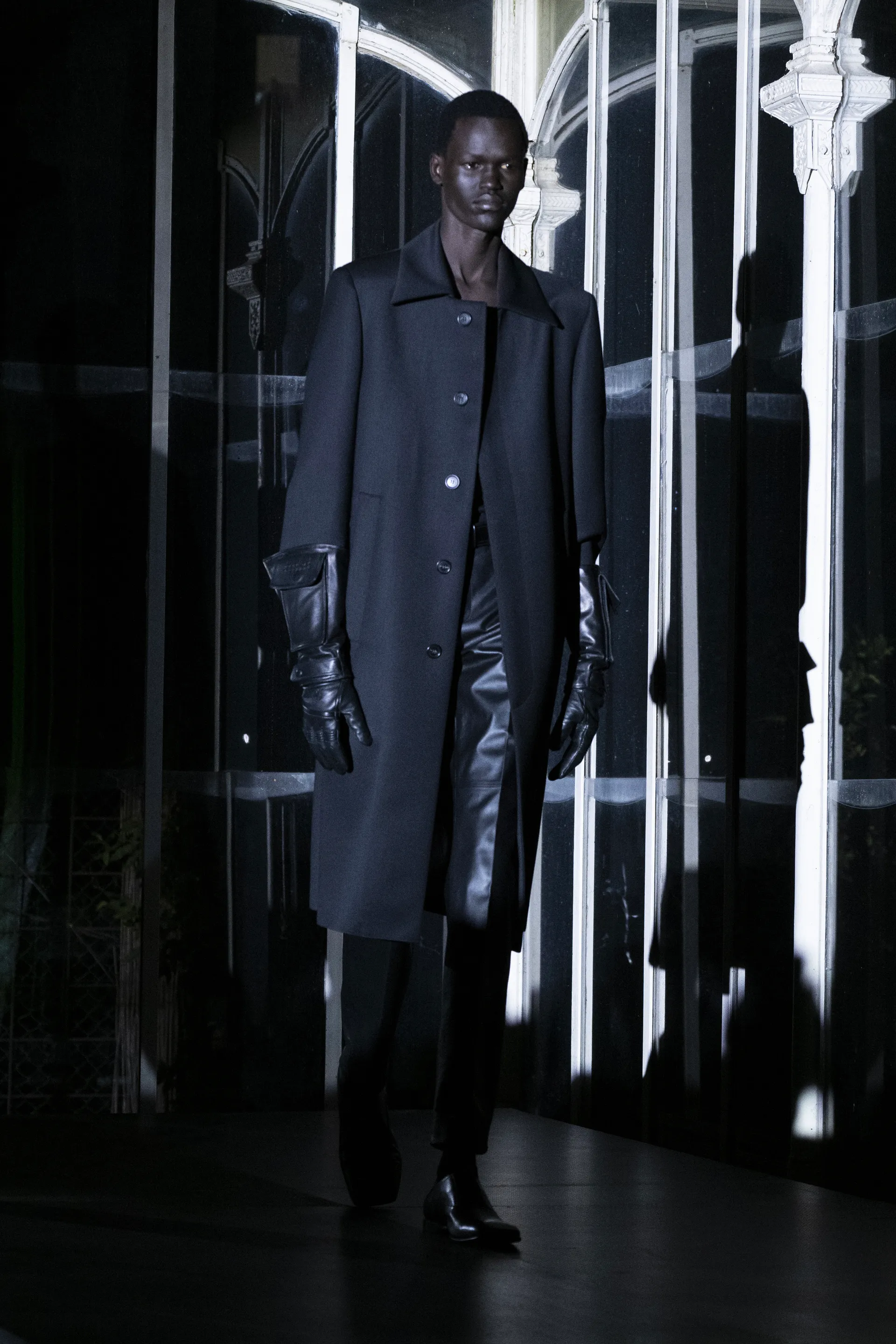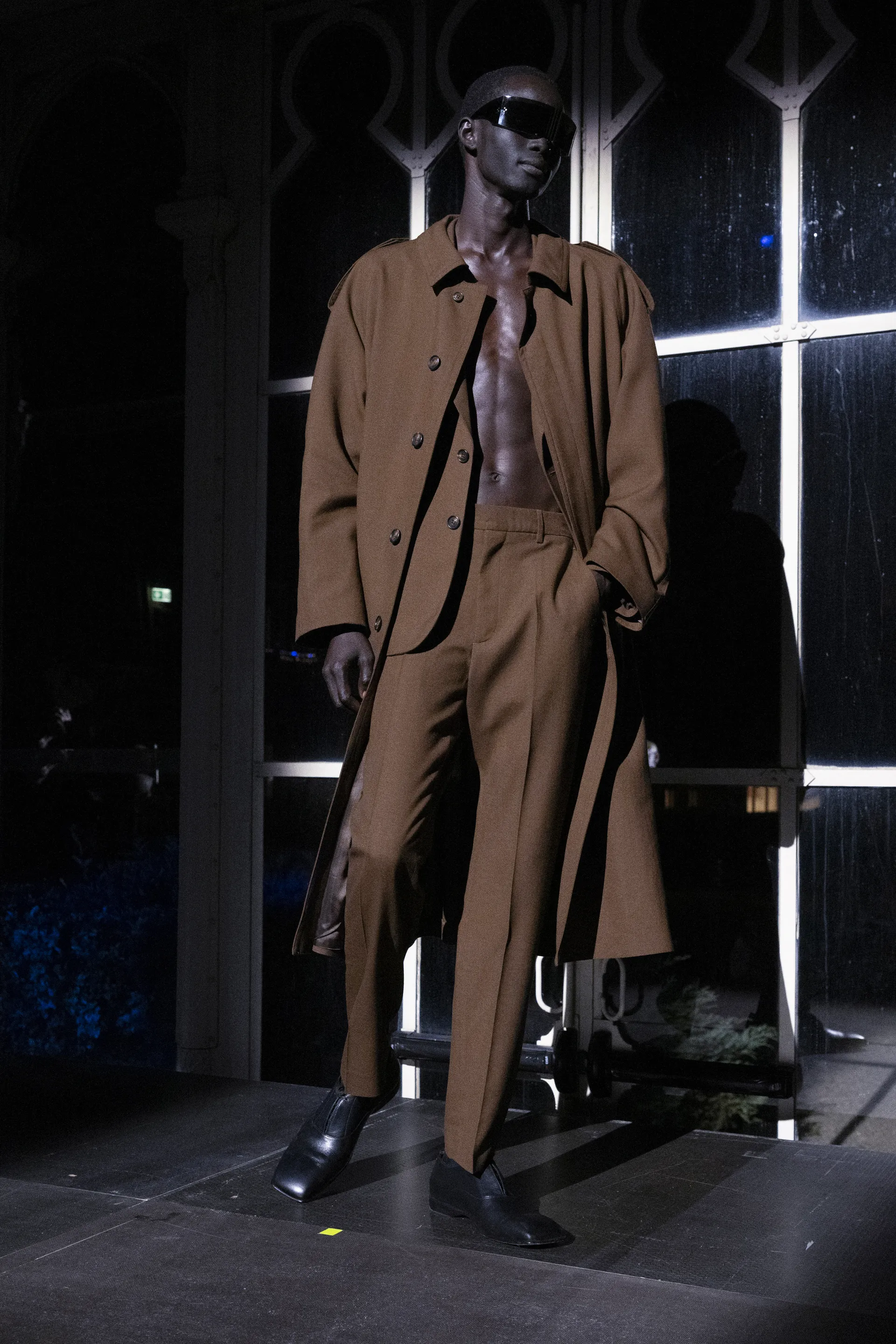 Una certa sensibilità femminile, nascosta sotto strati maschili duri e impenetrabili, trae ispirazione dal musicista americano Miles Davis. Dopo aver trovato un'immagine dell'artista, lo studio di MM6 Maison Margiela ha concepito l'idea per questa collezione prendendo spunto dai capi iconici del guardaroba di Davis, come i suoi cappotti di pelle, per dare forma al resto della lineup FW25. Fedele all'etica di MM6, l'esercizio creativo è stato diretto, focalizzato sul design e decisamente non narrativo, anche se la storia dietro queste creazioni offre uno spunto di narrazione. Mentre lo studio si è ispirato al leggendario musicista degli anni '60, gli artigiani responsabili della collezione hanno interpretato gli elementi del suo guardaroba attraverso la propria lente, utilizzando pochi riferimenti. Dai completi e trench coat, passando per le giacche di pelle, il denim, i pantaloni dritti, gli occhiali da sole oversize che ricordano quelli di Davis e una borsa a forma di custodia per tromba, la maison ha saputo mantenere un delicato equilibrio tra omaggio e imitazione, creando una collezione artigianale che unisce opulenza ed eleganza sobria.