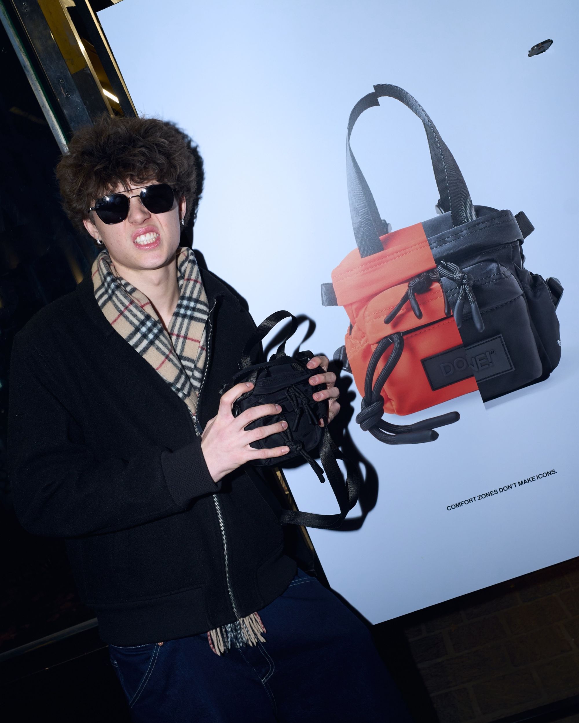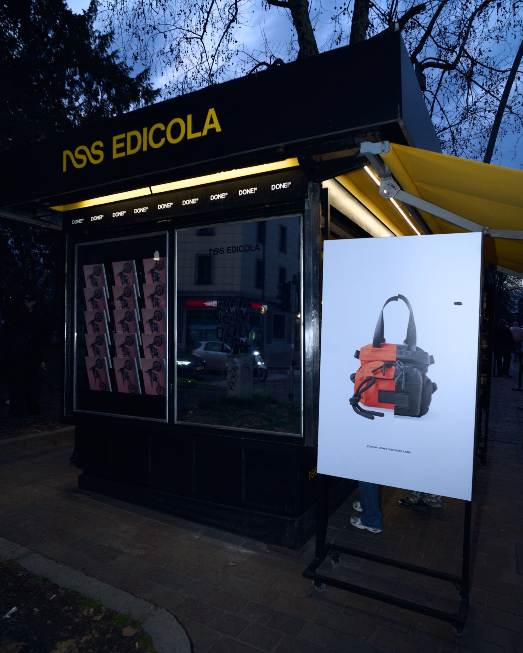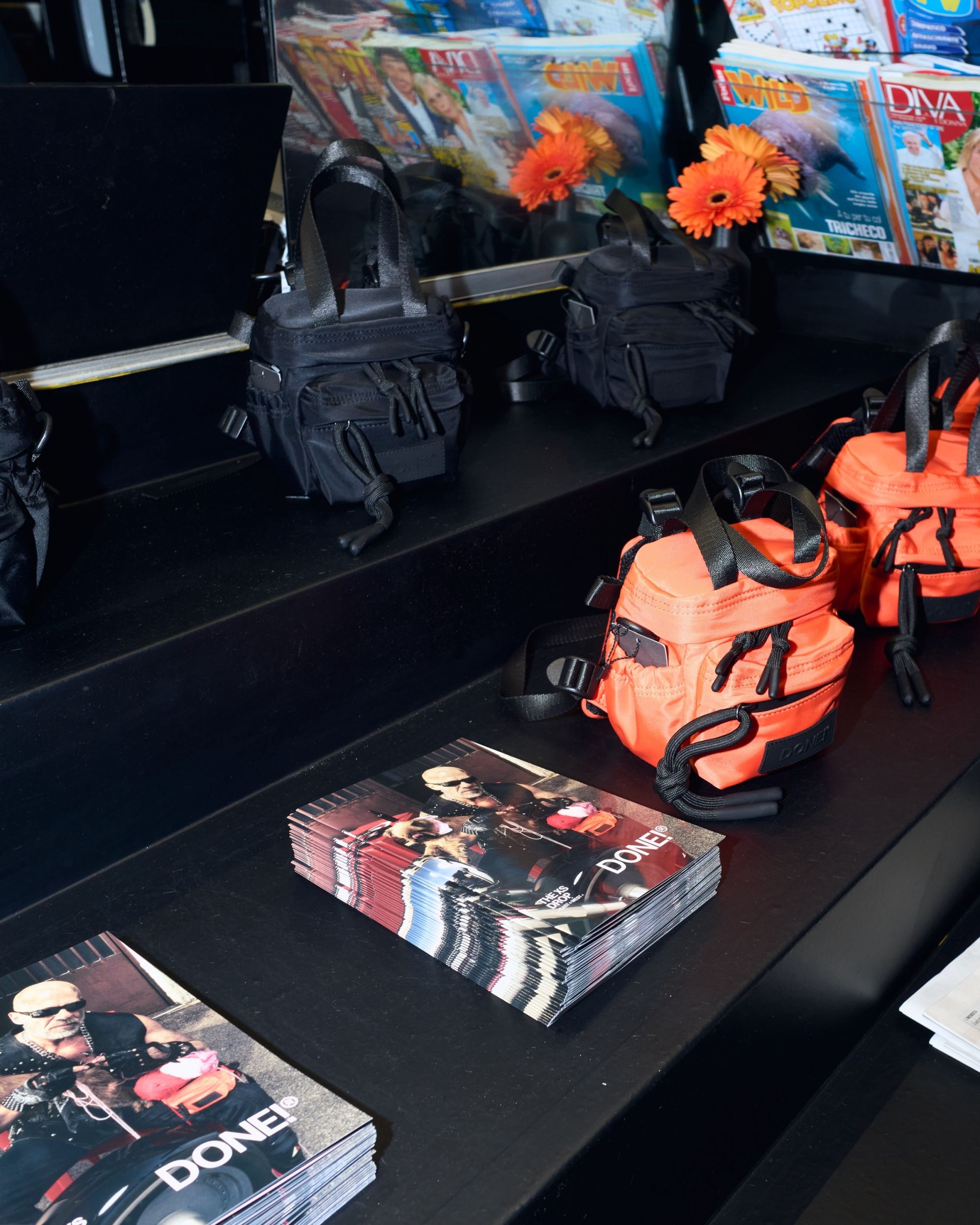 Il 13 marzo, DONE! e nss edicola hanno collaborato per un evento unico. I due brand si sono riuniti in Piazza Bruno Buozzi presso nss edicola per festeggiare il lancio del nuovo MINI >EAST+WEST< e riunire le rispettive community. In un momento di celebrazione e condivisione speciale, appassionati e amici dei brand hanno potuto passare del tempo insieme sulle note di uno speciale DJ set firmato Garon/Miro, scoprendo anche una fanzine dedicata alla collaborazione. La star dell'evento è stato dunque il MINI >EAST+WEST<, che rappresenta la versione più piccola dello zaino di DONE!. Grazie a un formato versatile, è stato pensato per le persone che non si fermano mai, che hanno bisogno di un accessorio compatto e leggero senza dover compromettere l'estetica. Sono stati questi i temi centrali dell'evento di DONE! e nss edicola: streetwear, funzionalità e community, uniti all'energia travolgente e carismatica del brand.