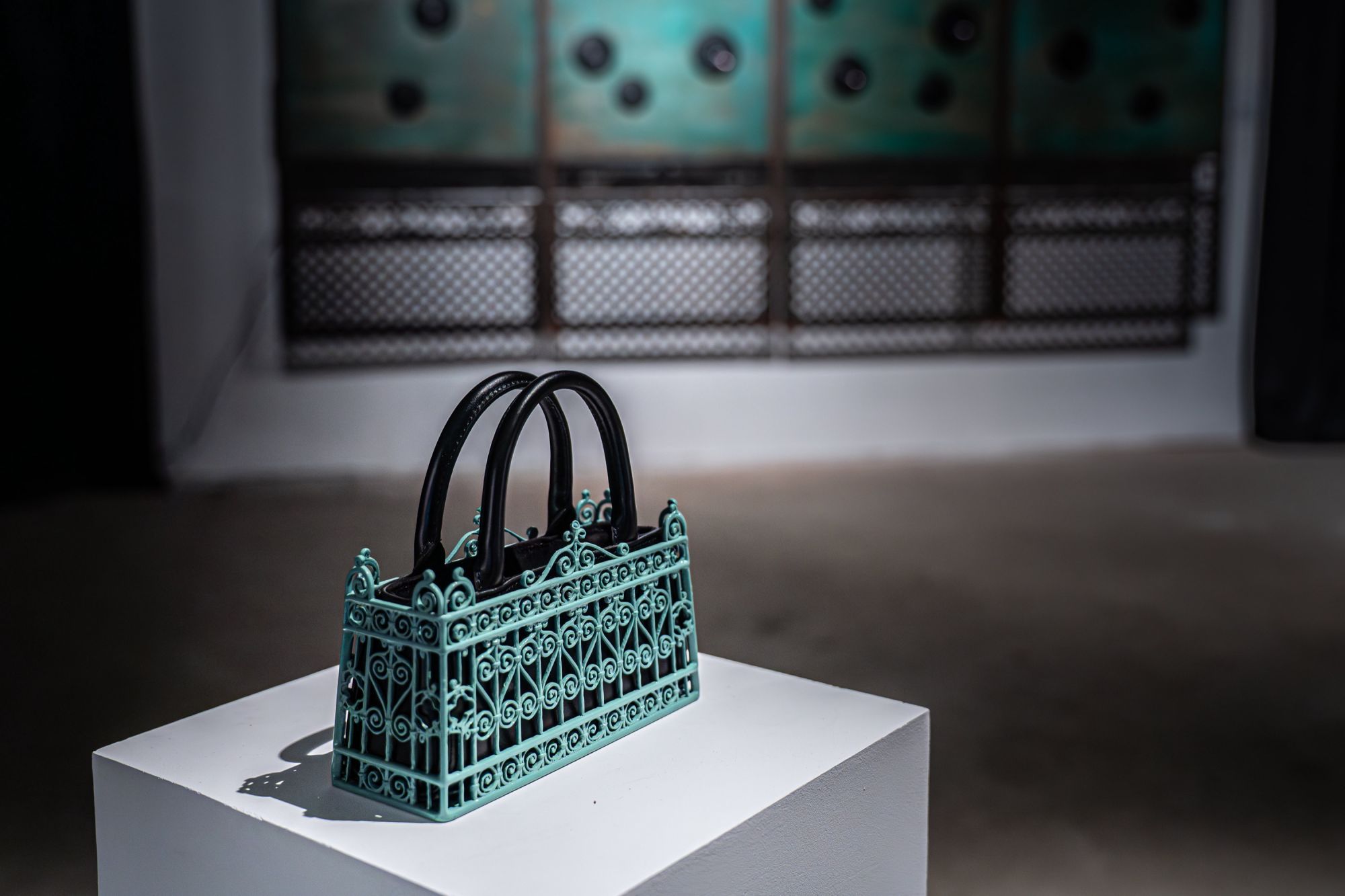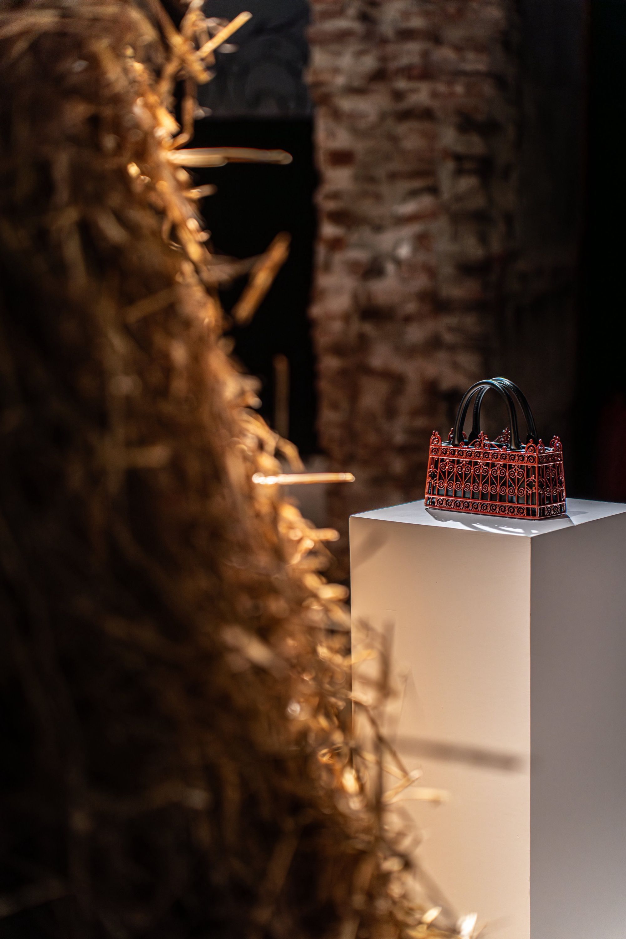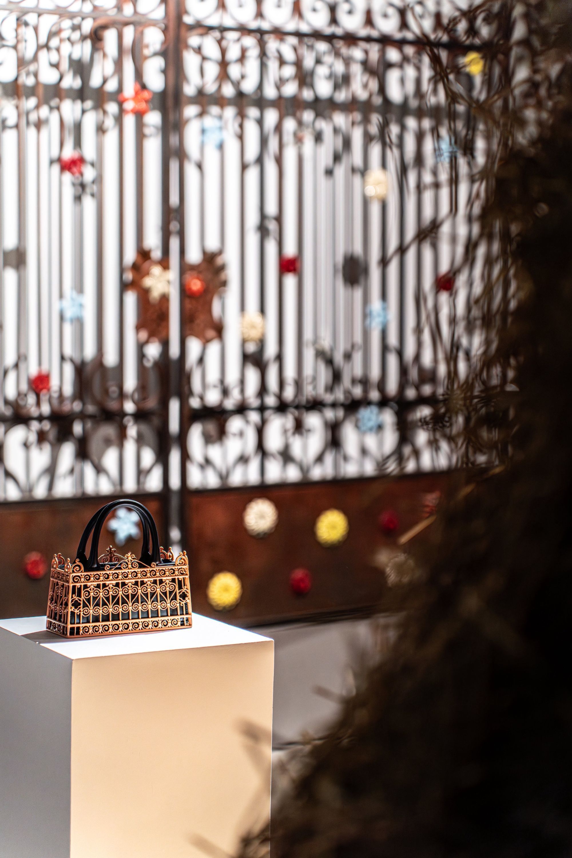 Al centro della mostra si ergeva la Portal Bag, un nuovo accessorio ideato da Dragic per BALKAN e presentato in sette varianti cromatiche. Con la sua struttura metallica ispirata ai cancelli tradizionali romeni, l’opera sintetizzava l’idea chiave della mostra: trasformare l’eredità architettonica e simbolica in un oggetto funzionale e scultoreo al tempo stesso. Parte opera d’arte, parte prodotto di lusso, la Portal Bag incarnava la filosofia di BALKAN: reinterpretare l’identità regionale attraverso l’artigianato moderno.
