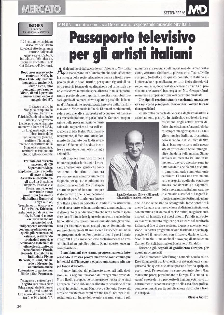 LDG: MTV Italia, a un certo punto, era quasi un esempio per gli altri paesi. America e Inghilterra guardavano i risultati straordinari di un canale che funzionava molto meglio di altri mercati, era leader assoluto sul pubblico giovane. Se volevi investire sui giovani, investivi su MTV, per questo non aveva problemi di pubblicità. Molti canali semplicemente replicavano i format anglosassoni, noi invece abbiamo investito sul locale.