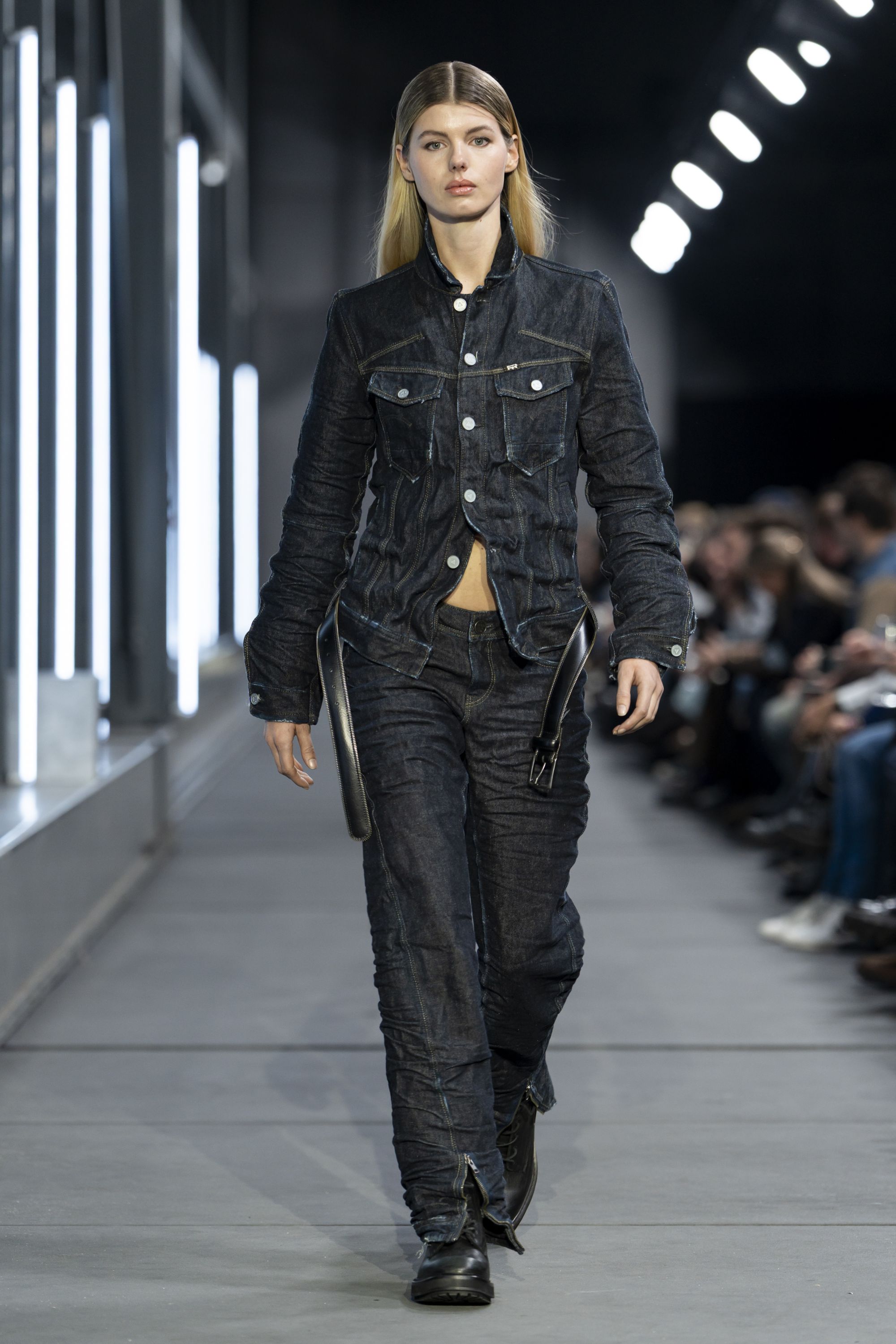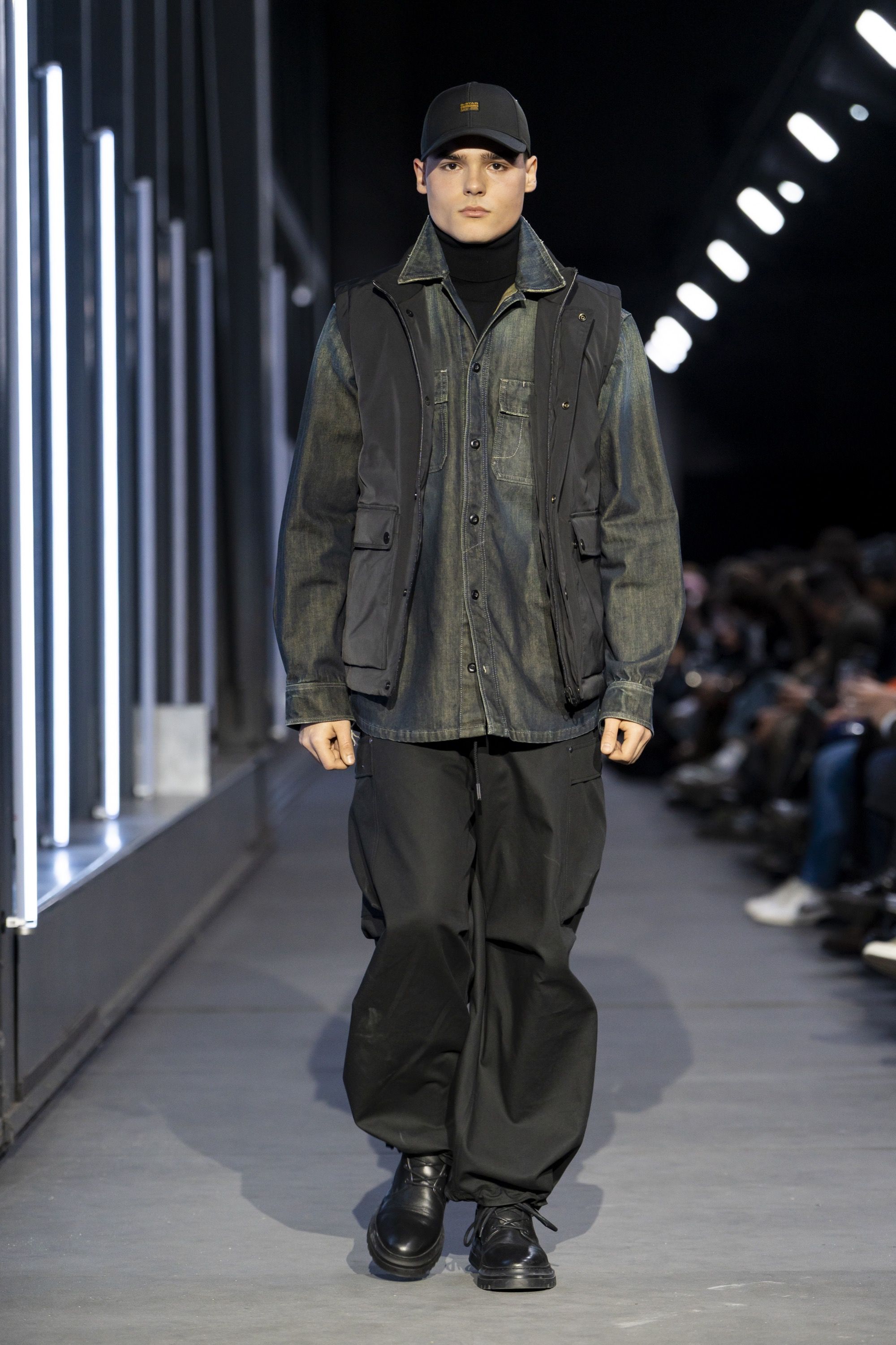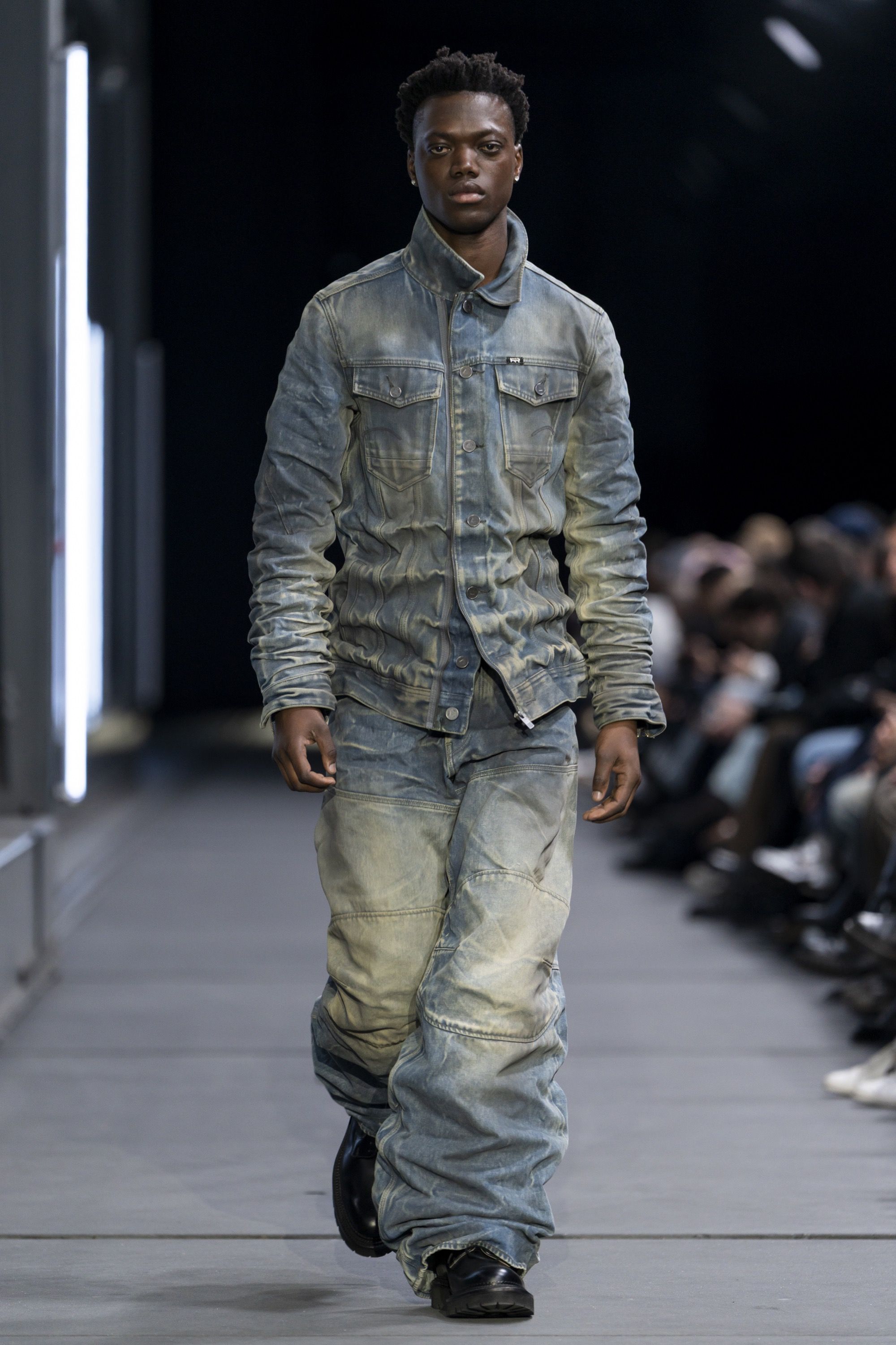 Con il progredire dello show, la sperimentazione lascia spazio alla chiarezza. Il secondo capitolo, ARCHETYPES, celebra l’eredità di G-STAR e del suo archivio, fondendo design senza tempo e artigianalità d’eccellenza. Realizzati con tessuti accuratamente selezionati, i capi incarnano l’essenza originaria del brand. Denim più pesanti e cuciture rinforzate, lavaggi puliti e dettagli funzionali introducono un senso di longevità, pur sempre introducendo una nuova interpretazione per il presente.
