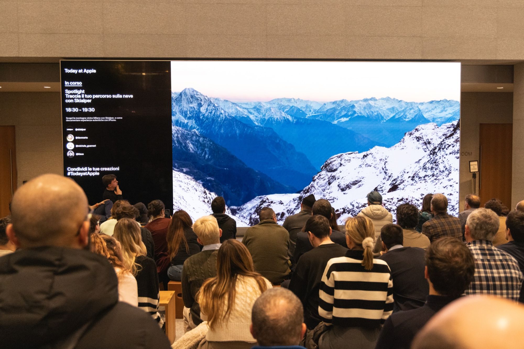Per celebrare l’inverno e portare la montagna in città, da Apple Piazza Liberty di Milano la montagna è entrata in città non come immagine da cartolina, ma come insieme di suoni, pratiche e racconti. Un passaggio tutt’altro che casuale, considerando che il rapporto tra metropoli, territori alpini e immaginario montano è destinato a intensificarsi nei prossimi mesi. L’occasione è stata un nuovo appuntamento di Today at Apple, costruito attorno a un tema preciso: il modo in cui la tecnologia può diventare uno strumento discreto per osservare, registrare e restituire l’esperienza dell’outdoor, senza sovrapporsi ad essa.