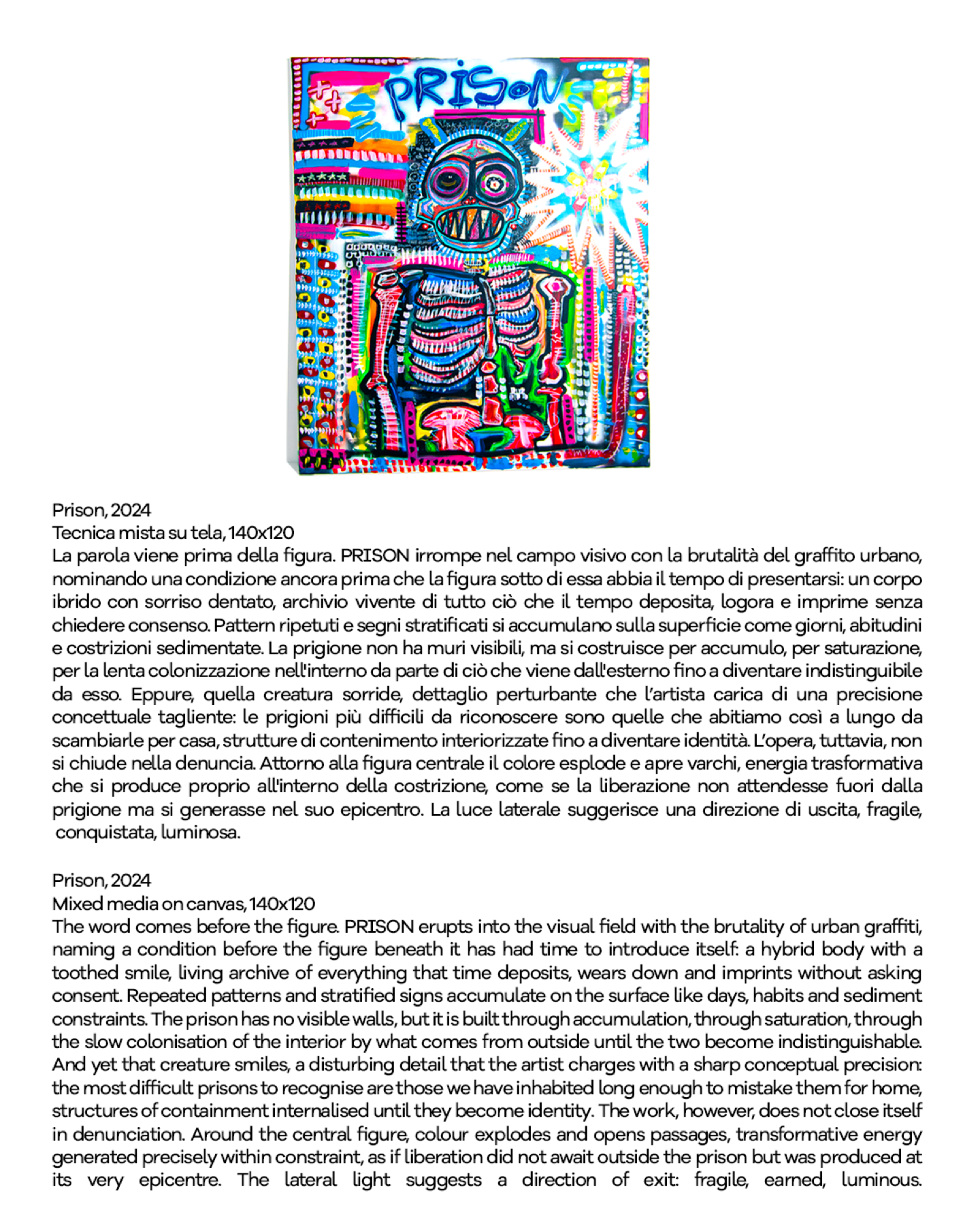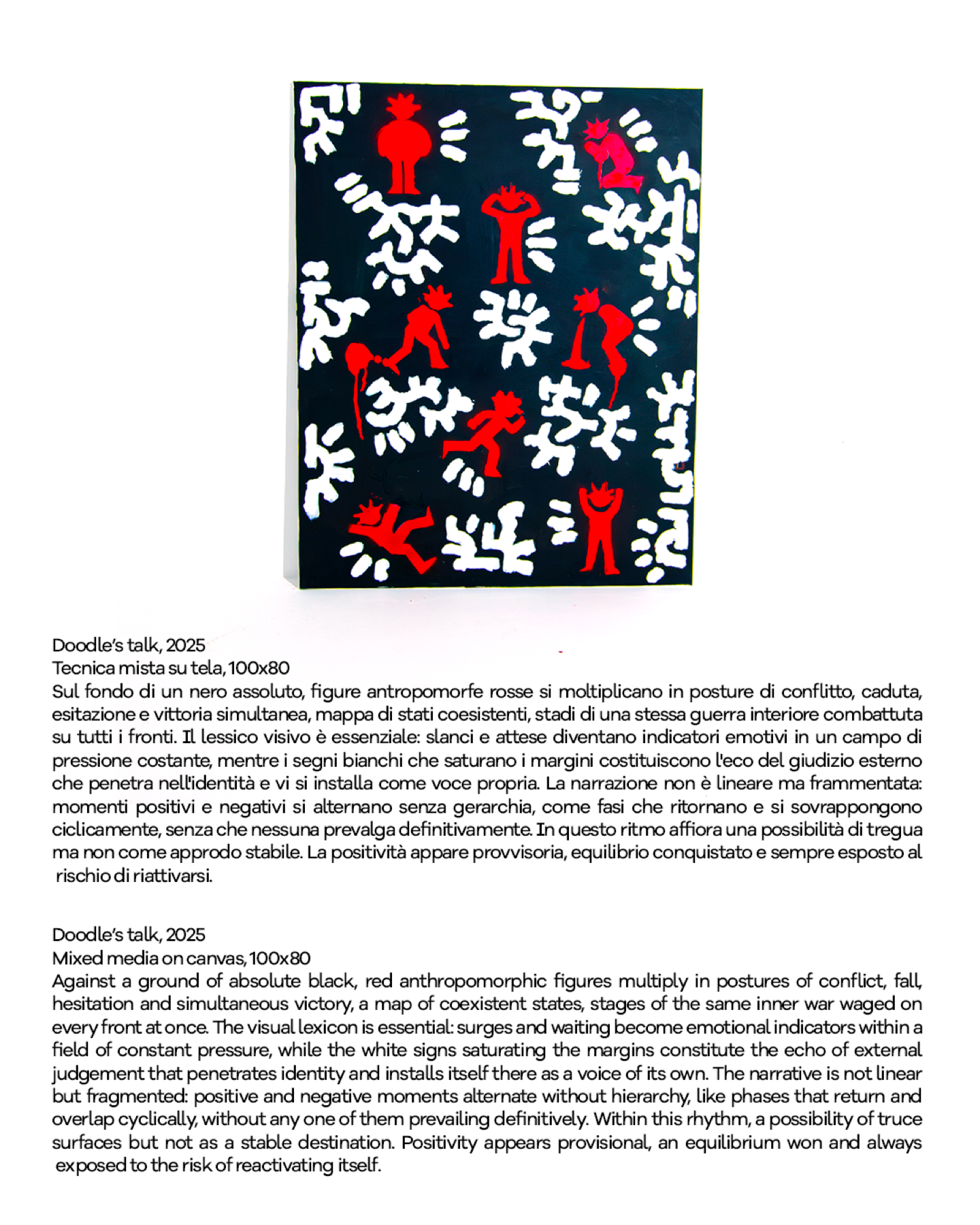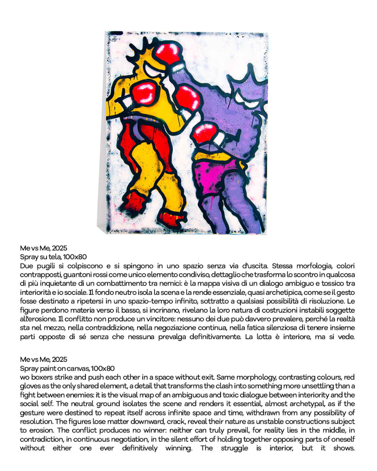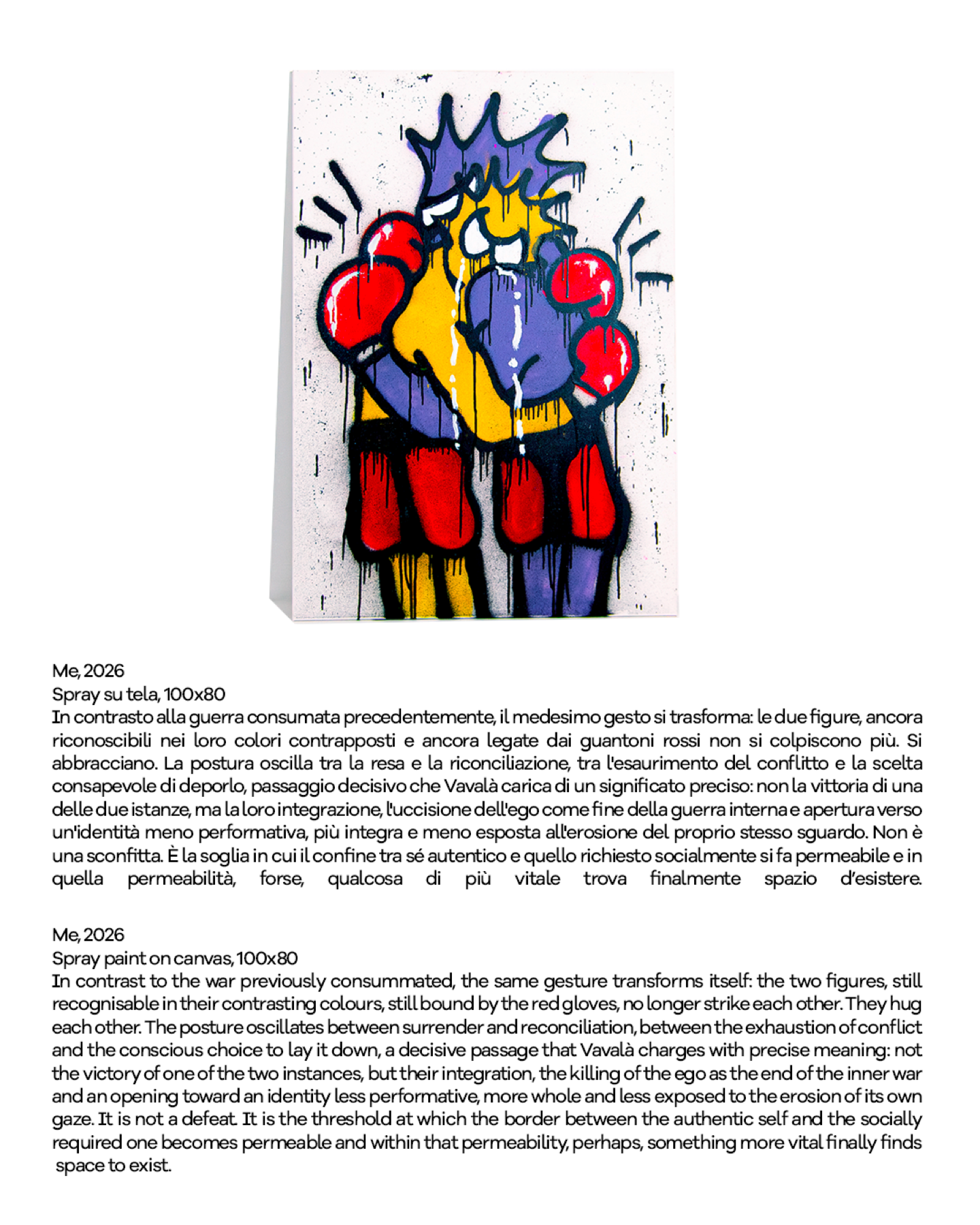 Il lavoro di Davide Vavalà unisce street art e cultura pop in un linguaggio immediato, stratificato e riconoscibile, ampliato da una forte presenza digitale che ha costruito una community internazionale. Con milioni di follower e collaborazioni con brand globali, la sua pratica si muove tra arte, moda e cultura visiva contemporanea. In-betweenness: estetiche dell’incompiuto si configura così come una mostra-manifesto: un invito a riconoscere nel fragile e nel non-finito non un limite, ma uno spazio possibile di consapevolezza e trasformazione.