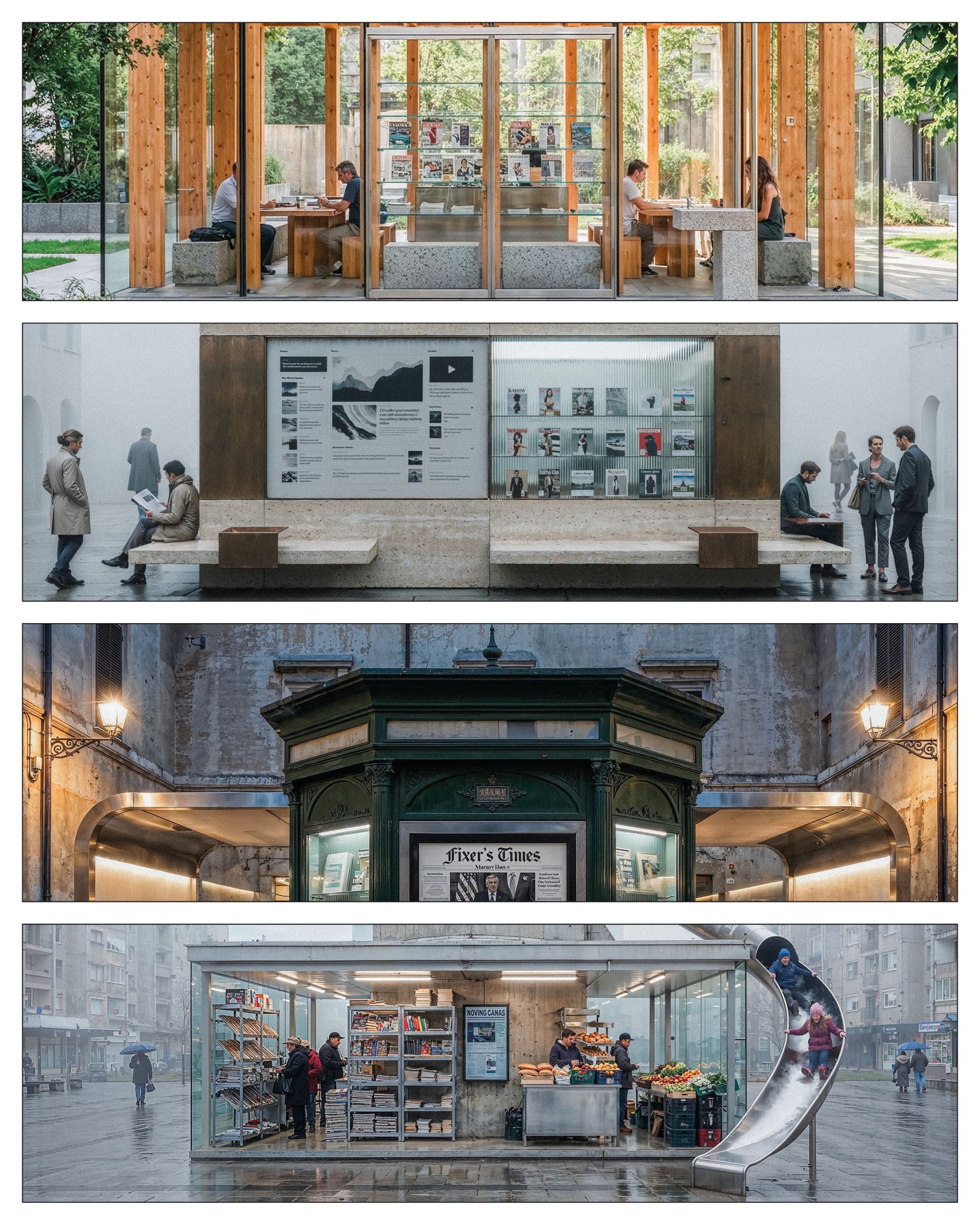 L’edicola del Novecento vendeva carta. Quella del futuro deve distribuire consapevolezza. E in una generazione cresciuta tra feed infiniti e notifiche continue, forse la vera innovazione non è rendere tutto più veloce. È ridare forma fisica a ciò che conta. Per capire come si disegna un’edicola del futuro abbiamo chiesto ad alcune delle voci più autorevoli del design contemporaneo milanese, come Stefano Boeri, Forma Fantasma, Alcova Milano e Forgotten Architecture. Grazie all’aiuto di Capslock Magazine, siamo riusciti a visualizzare le loro idee: questo è stato il risultato.