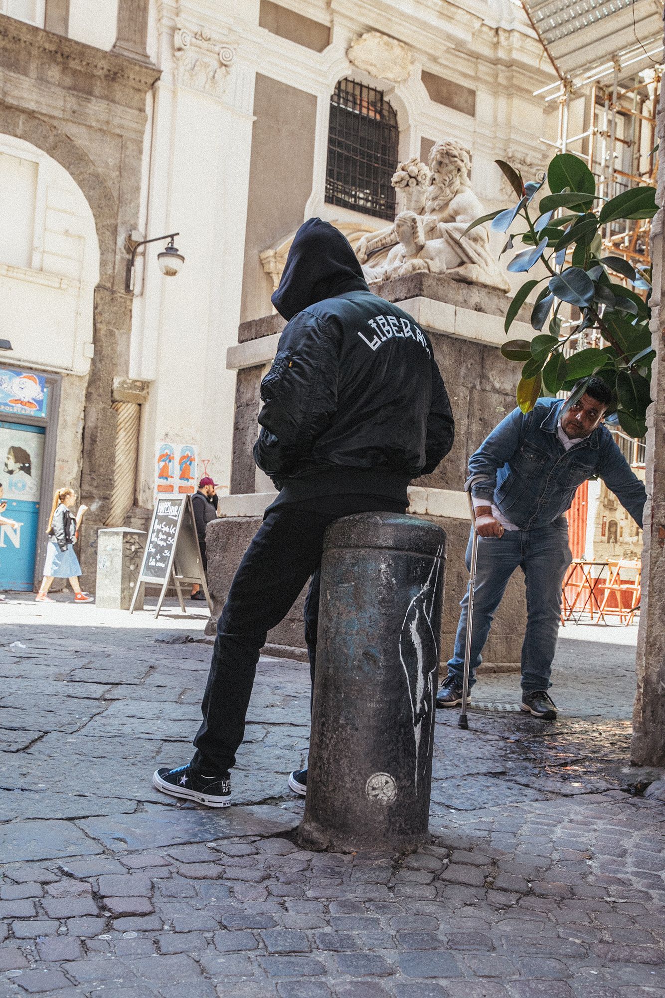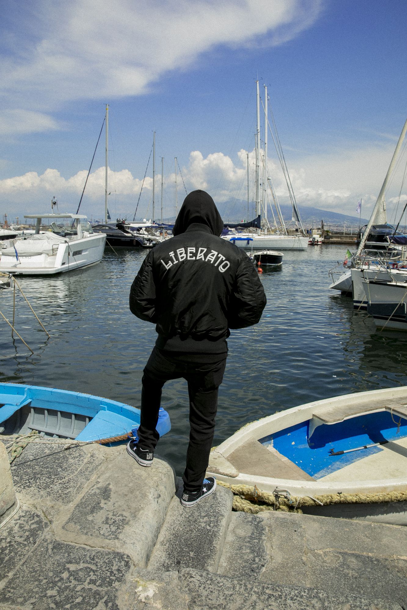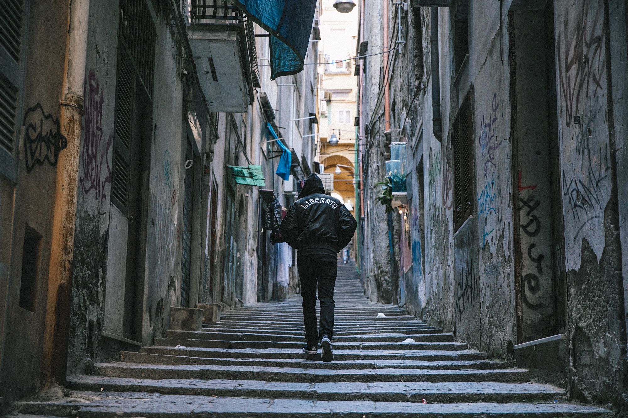 nss factory e la lente di Vincenzo Schioppa hanno immortalato Liberato con il suo bomber e le Converse One Star nel cuore di Napoli.