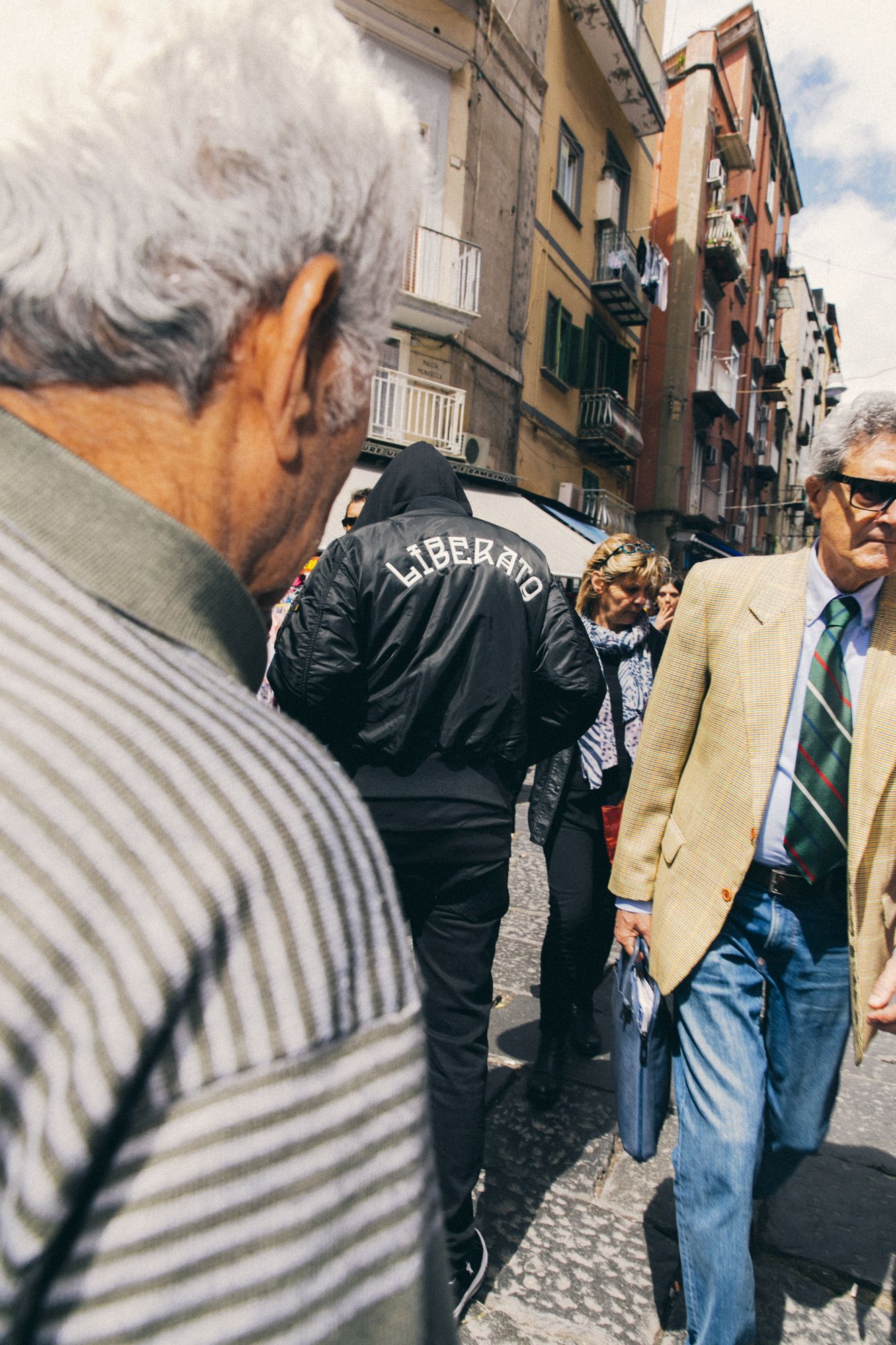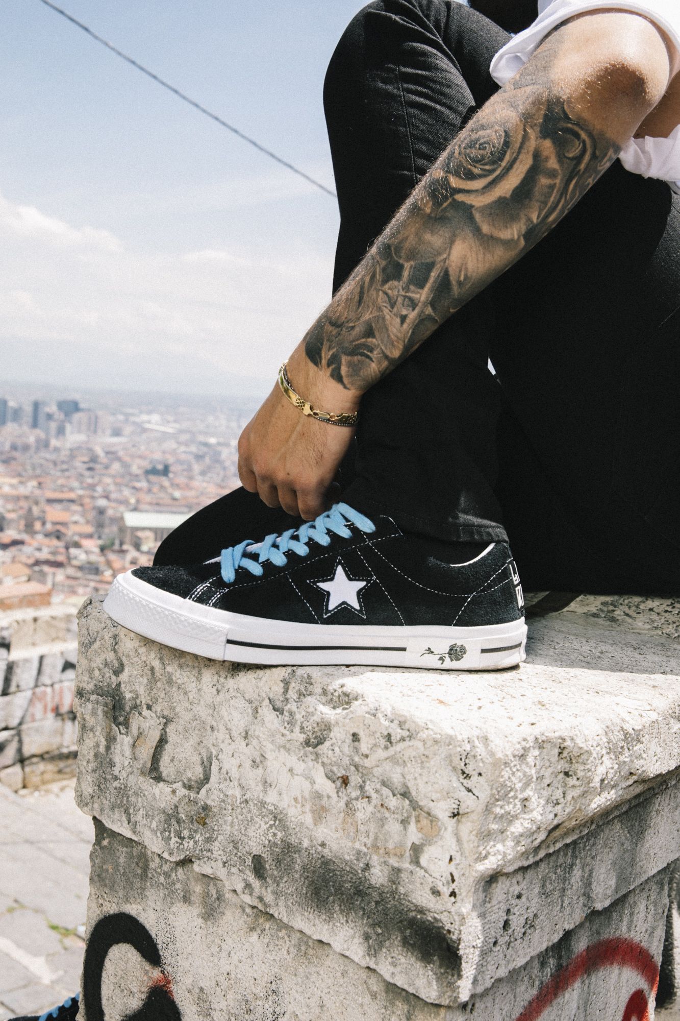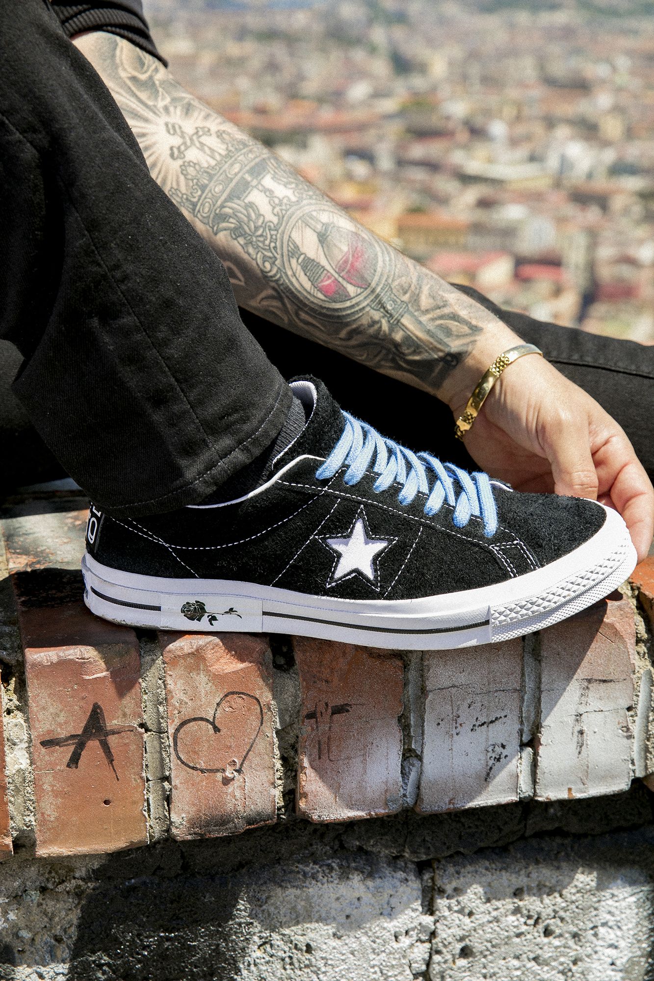 nss factory e la lente di Vincenzo Schioppa hanno immortalato Liberato con il suo bomber e le Converse One Star nel cuore di Napoli.