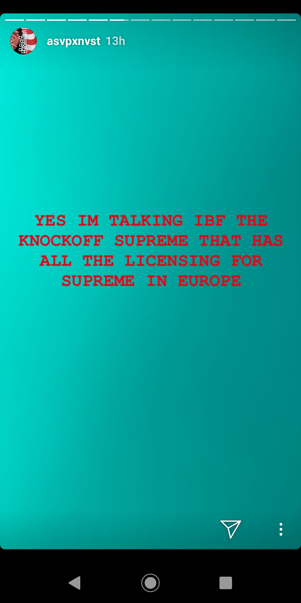 Nella battaglia legale tra Supreme NY e Supreme Italia, in pochi per ora si sono schierati dalla parte del brand nato a Bisceglie in Puglia, poi emigrato in Spagna e ora addirittura sbarcato in Cina. Ieri sera però uno dei membri di spicco della A$AP Mob - A$AP Nast - ha pubblicato due storie sul suo profilo IG in cui chiedeva esplicitamente di se qualcuno può metterlo in contatto con IBF, la società che detiene i marchi di Supreme Italia e Supreme Spain.