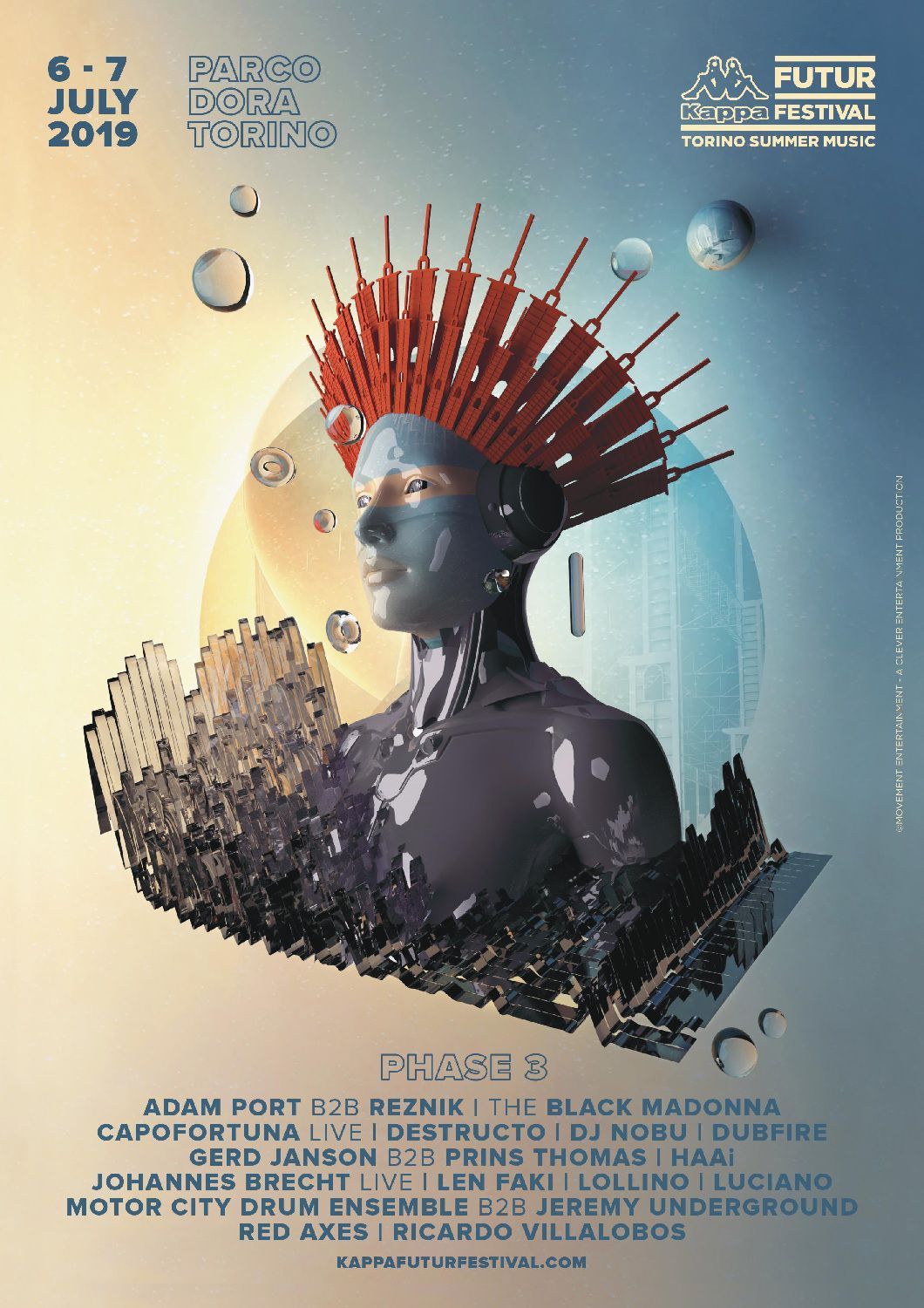 Il 6 e il 7 luglio 2019 dalle 12.00 alle 24.00 l’area Roseto all’interno del Parco Dora di Torino ospiterà il meglio della musica elettronica contemporanea. Durante questa edizione, l’ottava, sui tre palchi si alterneranno dj della scena internazionale. Dietro la consolle ci saranno mostri sacri come Carl Cox, Richie Hawtin, Ricardo Villalobos ed anche numerose DJ donne in ascesa globale come l’astro nascente Peggy Gou, la russa Nina Kraviz, Charlotte De Witte, Amelie Lens o Dana Ruh. E poi Boris Brejcha, Boys Noize, Enrico Sangiuliano, Jamie Jones, Nic Fanciulli, senza dimenticare il live di Vitalic.