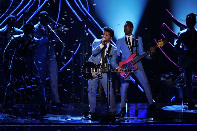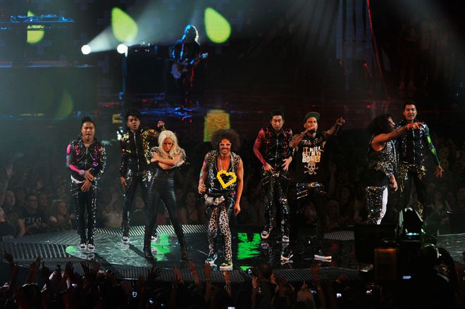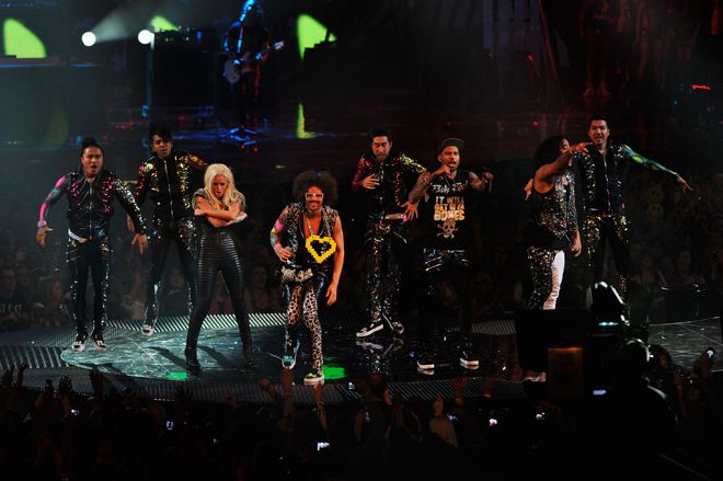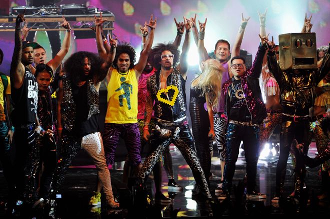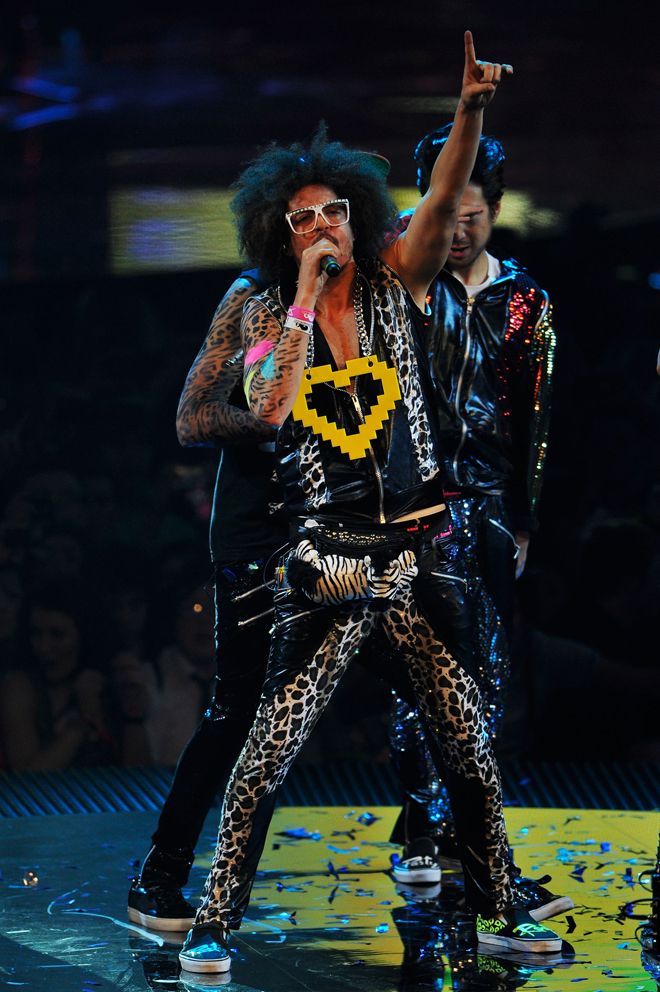 Menzione speciale per gli outfits scelti dalla cantante inglese Jessie J, in particolare per l’abito verde stampato di Falguni & Shane Peacock, abbinato ad un perfetto look Cleopatra, e per il duo LMFAO che non tradiscono il loro stile eccentrico e personale farcito di fantasie animalier e di dettagli colorfull che mixano tradizione street, hip–hop e rock-style.