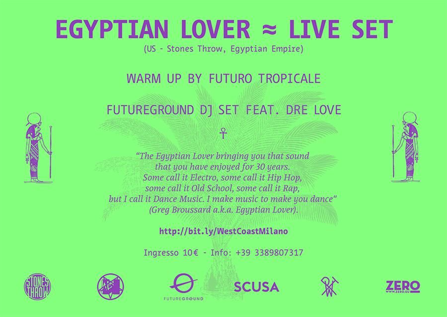 Egyptian Lover verso la metà degli anni ’80 ha contribuito a far emergere il suono della Roland 808 che successivamente ha influenzato i produttori hip hop, r’n’b’, o più in generale di dance music, di tutto il mondo. In questi anni ha collaborato con M.I.A. e Rye Rye (Rock Off Shake Off), con Jamie Jones (Galactic Space Bar) e naturalmente James Pants, tutti ci ricordiamo di quel disco in mano a Tyler in quella famosa intervista su youtube: James Pants meets Egyptian Lover.